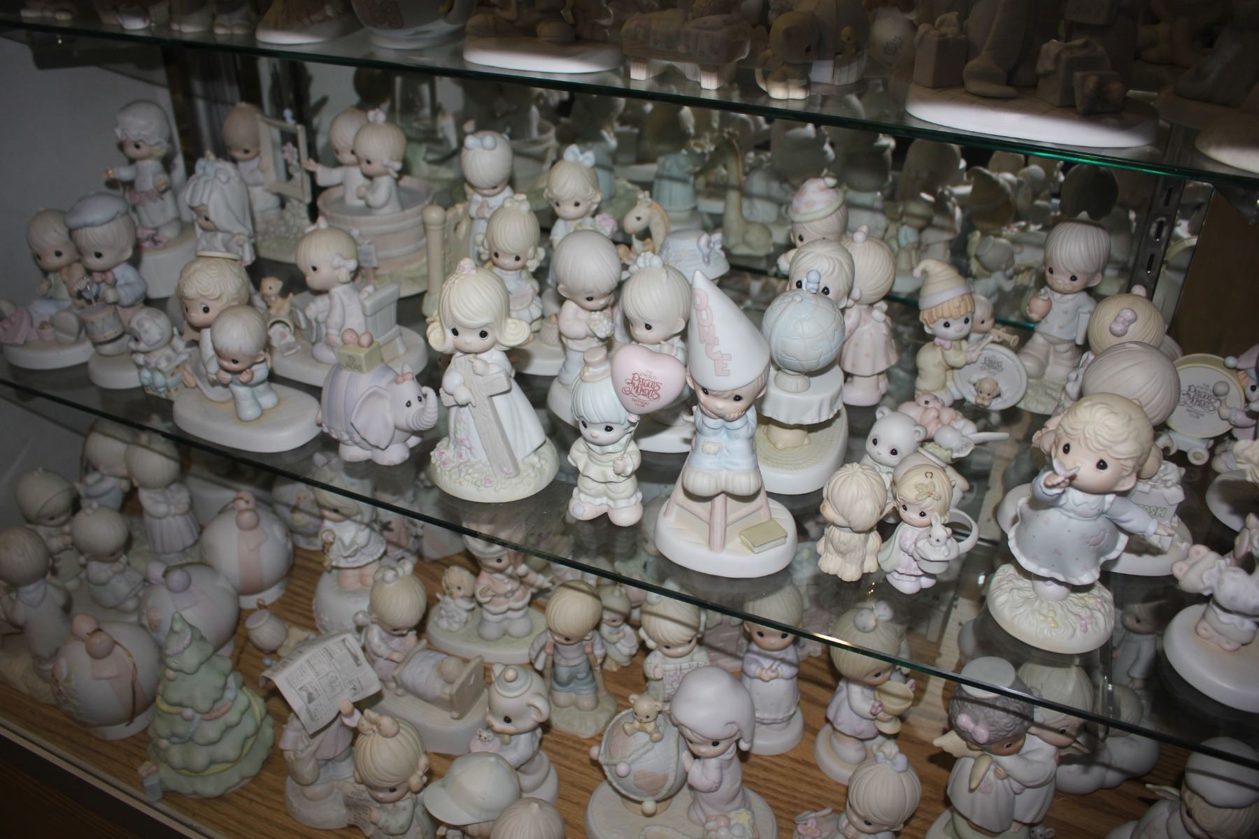 LARGE SHELF LOT OF ASSORTED ENESCO PRECIOUS MOMENTS COLLECTABLE FIGURINES