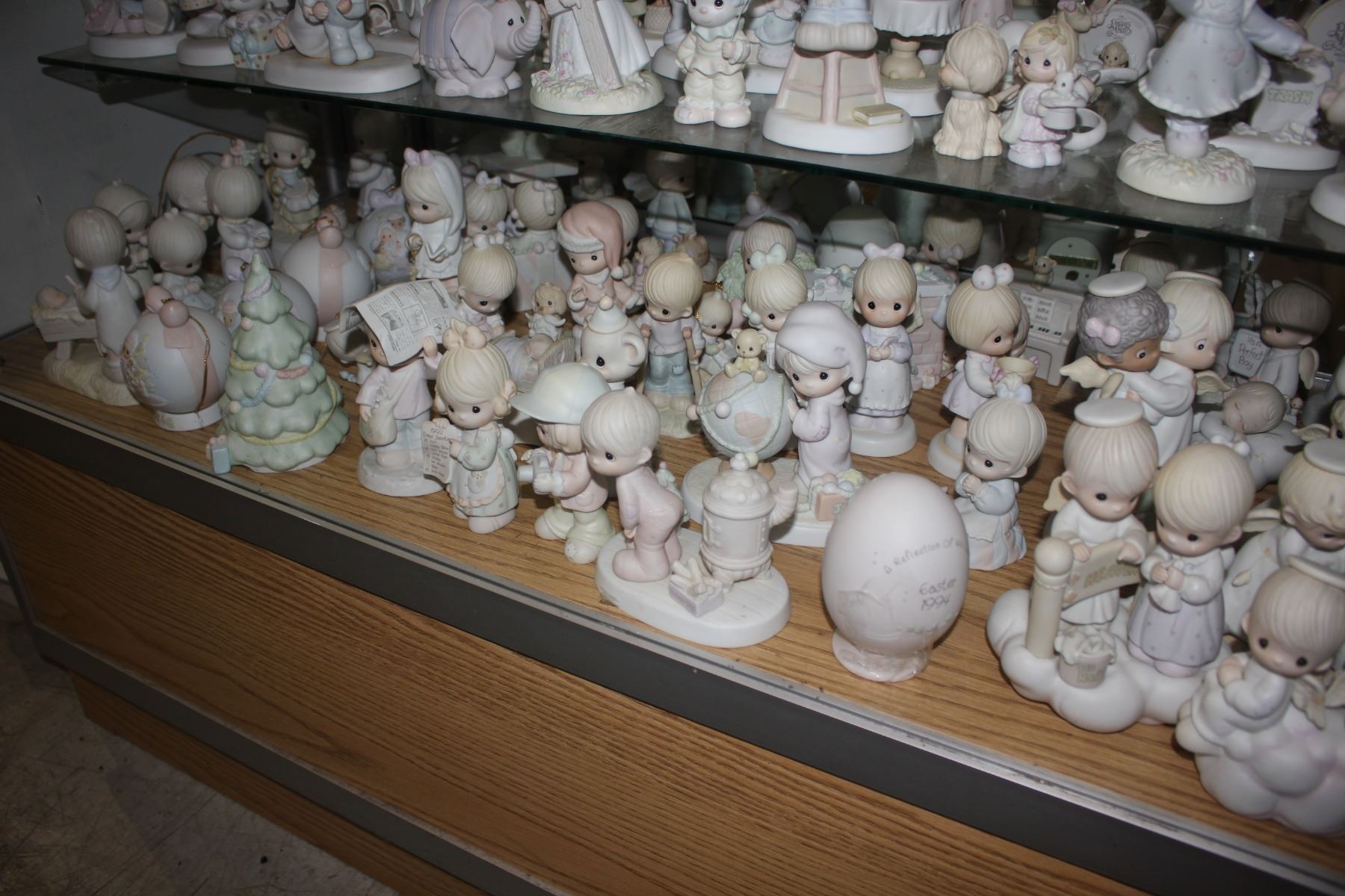 LARGE SHELF LOT OF ASSORTED ENESCO PRECIOUS MOMENTS COLLECTABLE FIGURINES