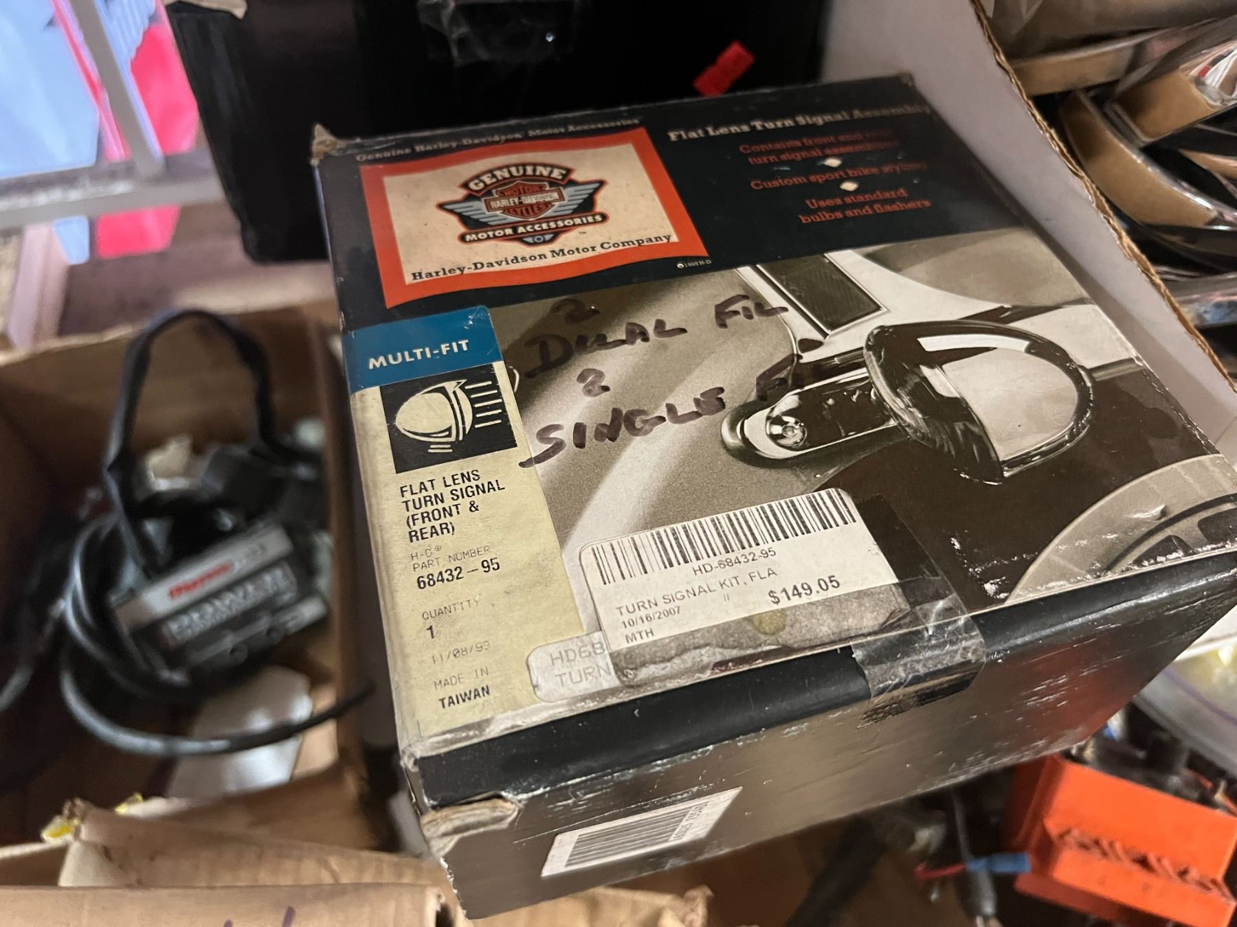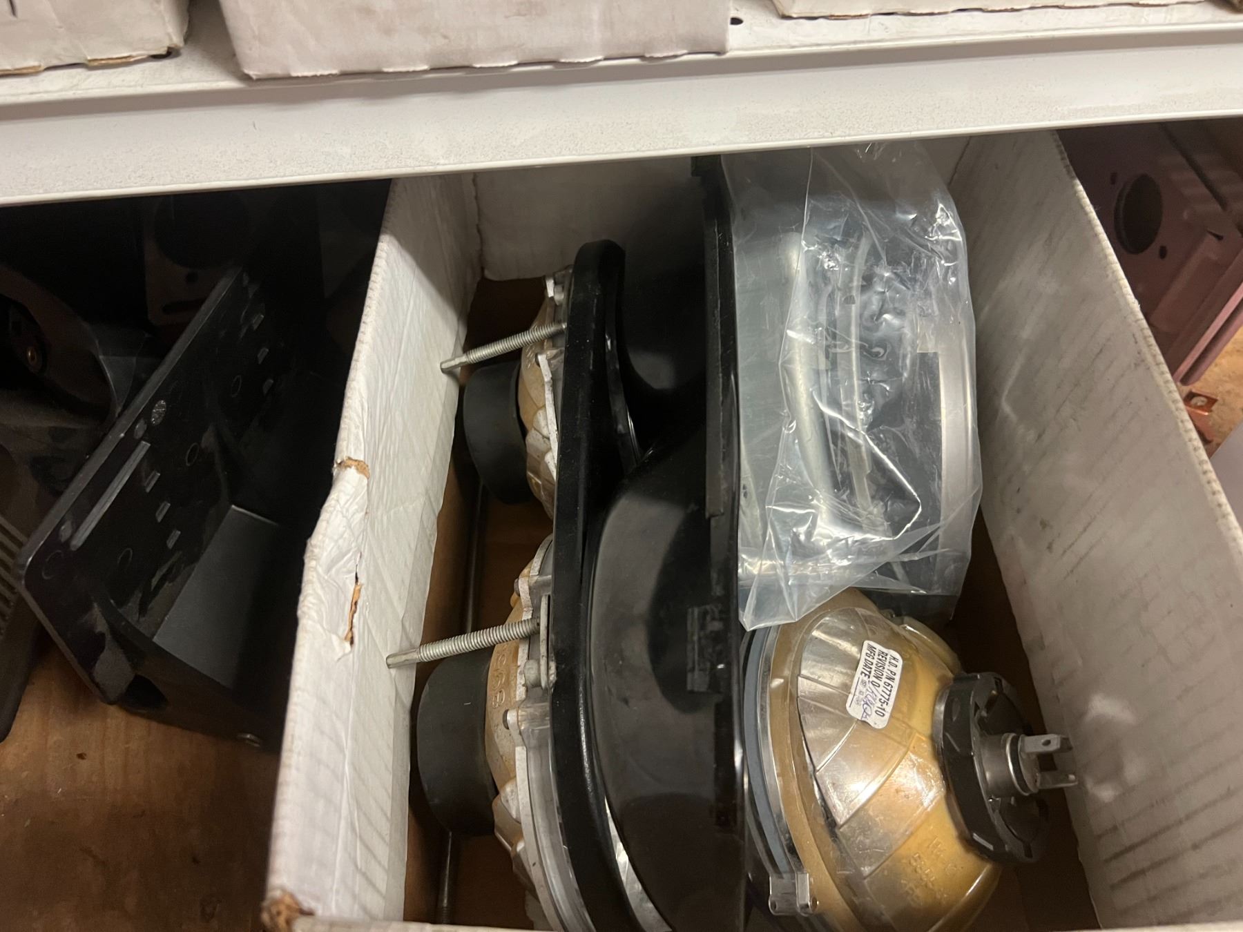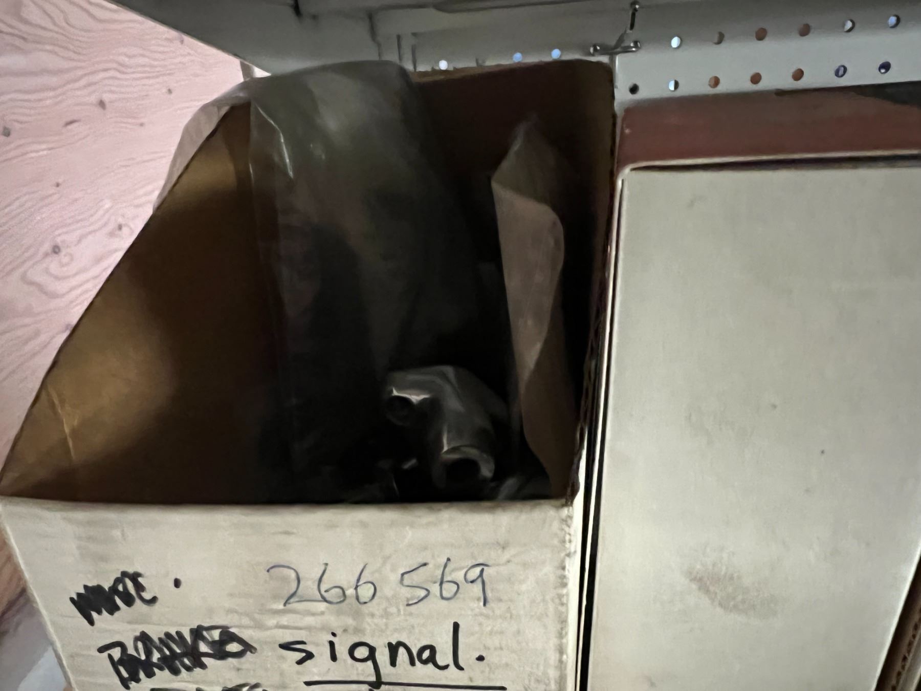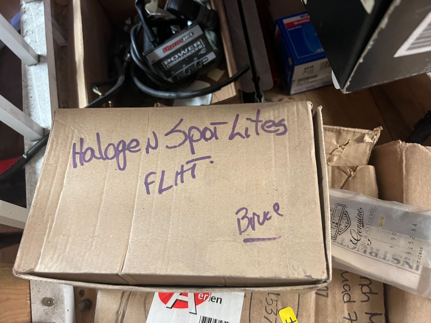 LARGE SHELF LOT OF INVENTORY - TAIL LIGHT LENS, HEAD LIGHTS, LIGHT RINGS, VOLTAGE REGULATOR, SPOT