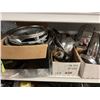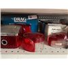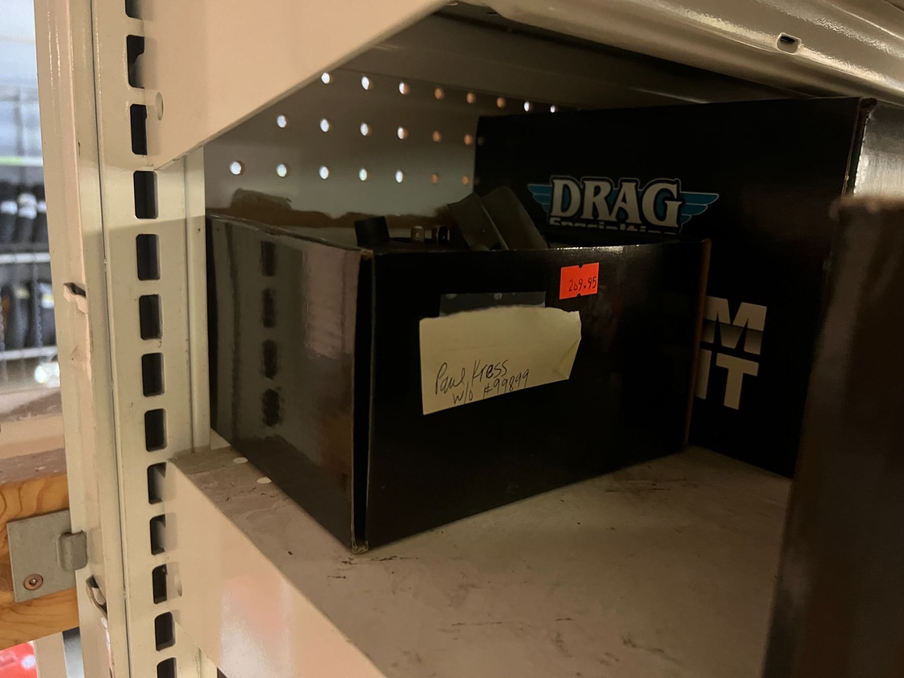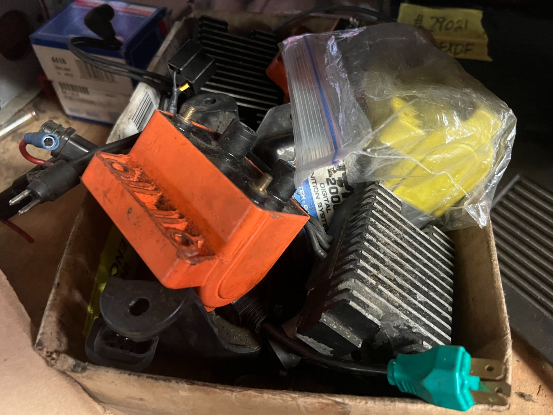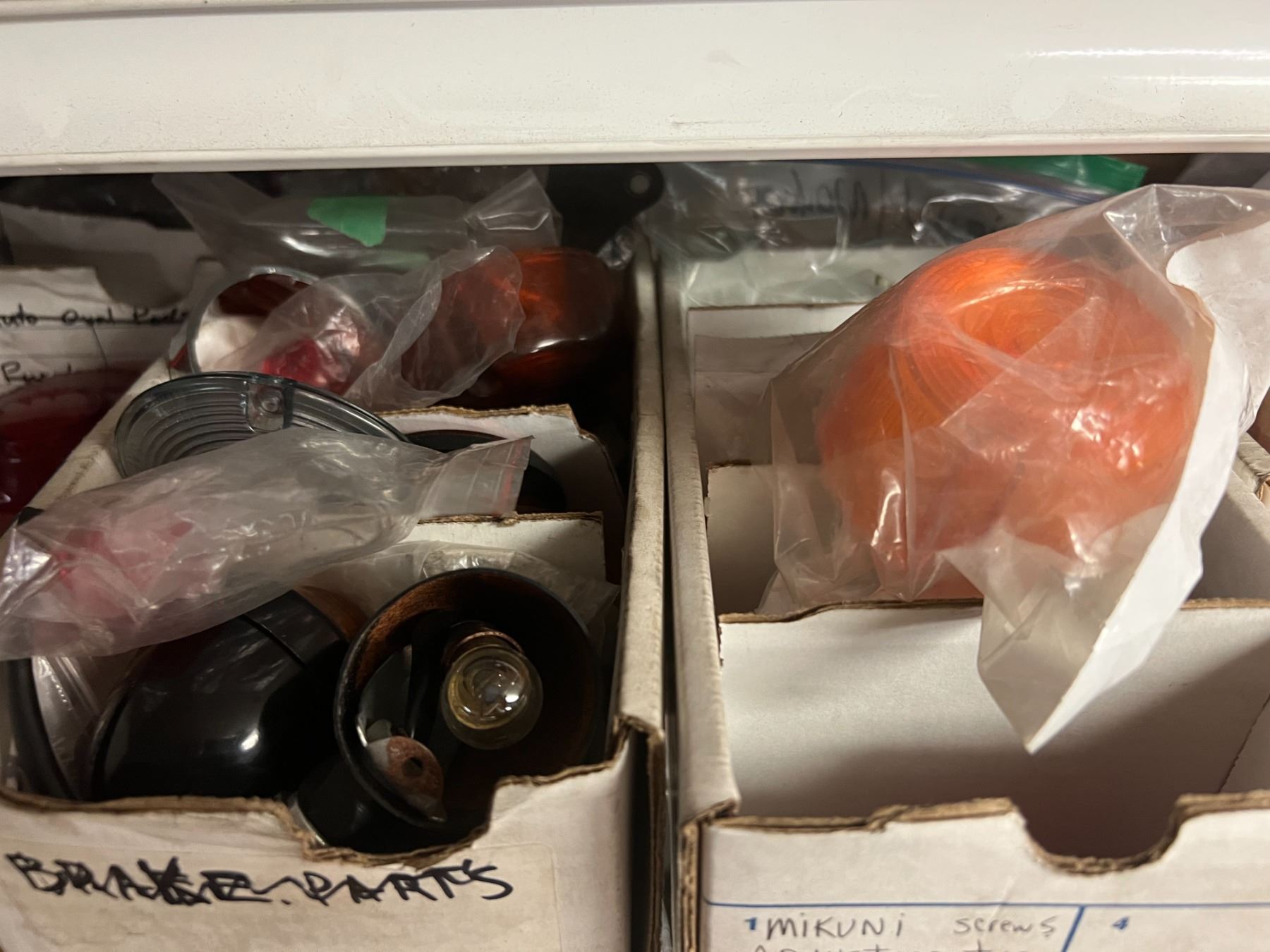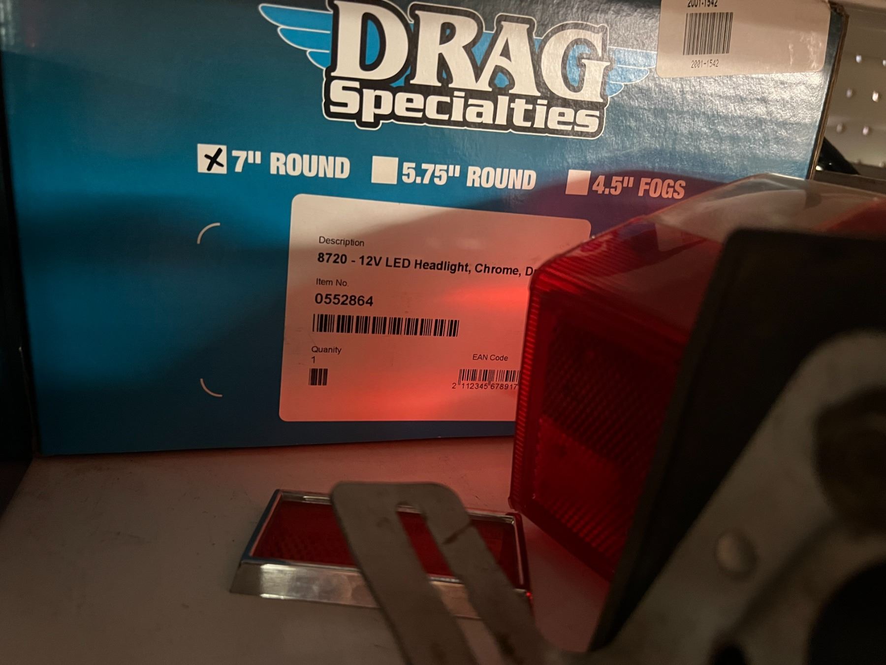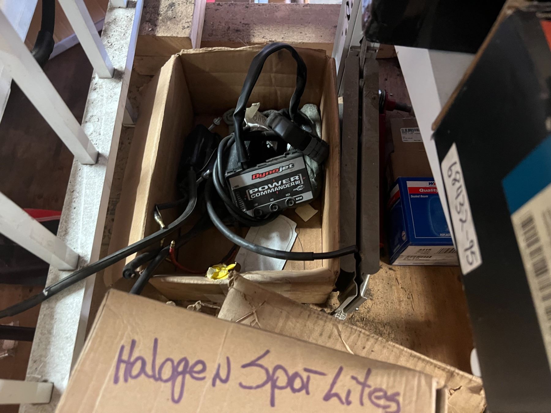 LARGE SHELF LOT OF INVENTORY - TAIL LIGHT LENS, HEAD LIGHTS, LIGHT RINGS, VOLTAGE REGULATOR, SPOT