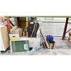 LARGE SHELF OF ASSORTED FILM INDUSTRY SHOW PROPS, DECORATIVE & HOUSEHOLD ITEMS