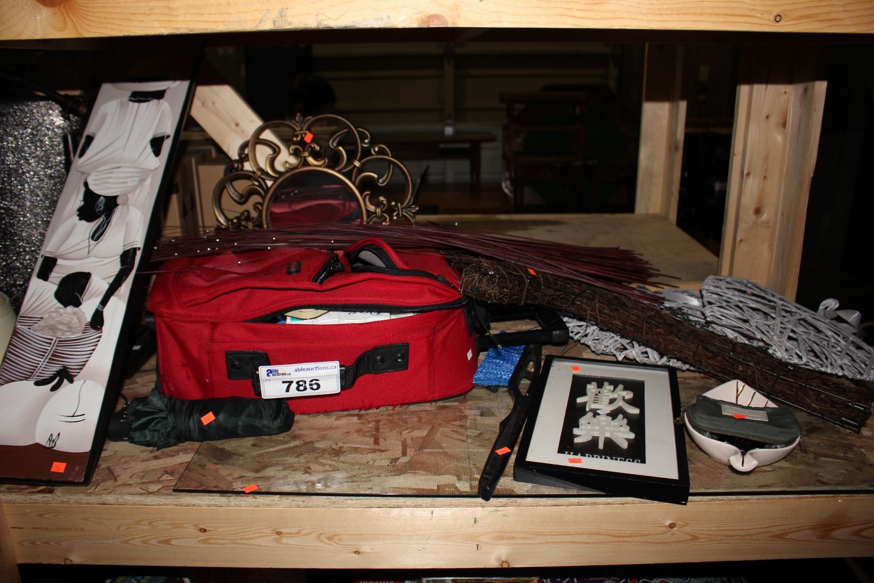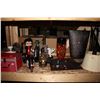 LARGE SHELF OF COLLECTIBLES, DECOR, DECANTERS AND MORE