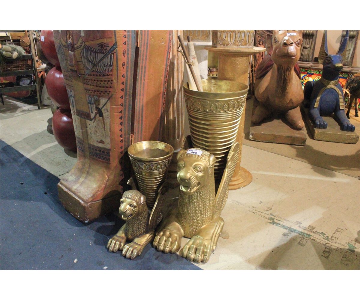 LARGE & SMALL EGYPTIAN WINGED CAT VASE