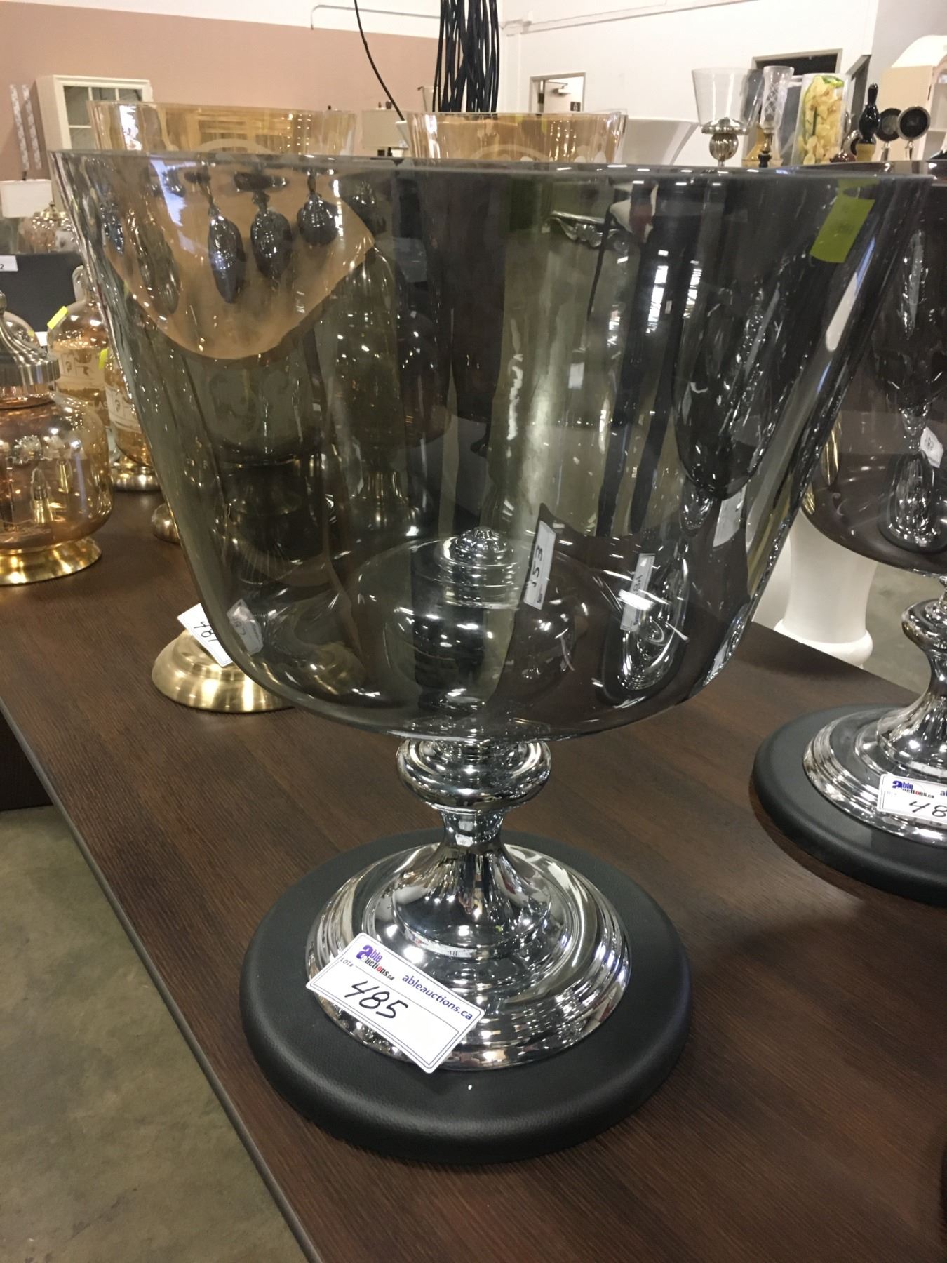 LARGE SMOKED GLASS WITH CHROME PLATED BASE DRY FLOWER/POTPOURRI VASE