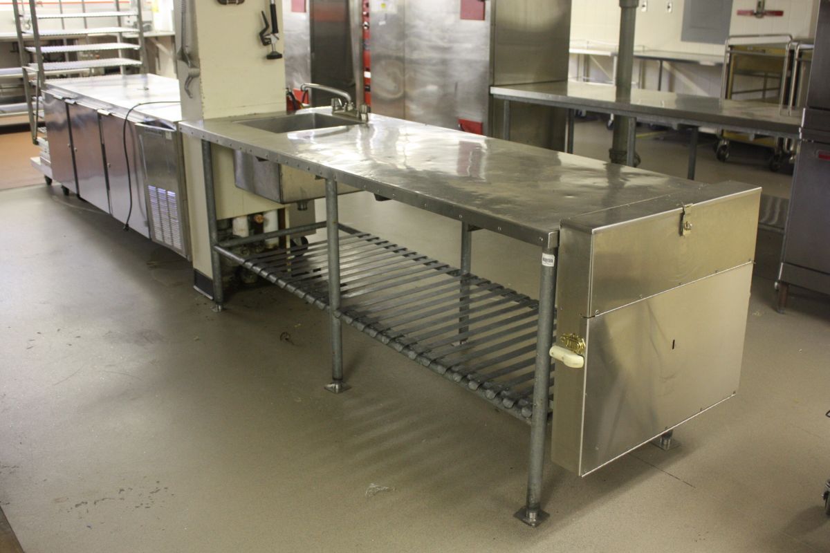 LARGE STAINLESS STEEL PREP- SINK WITH LOCKING KNIFE HOLDER