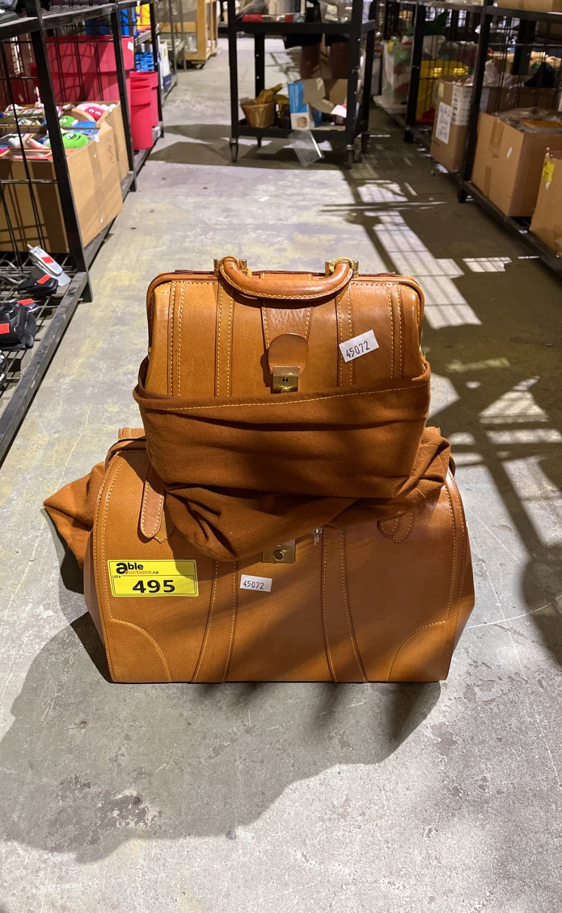 LARGE VINTAGE LEATHER DOCTOR'S BAG WITH DUST BAG & SMALL VINTAGE LEATHER DOCTOR'S BAG WITH DUST BAG