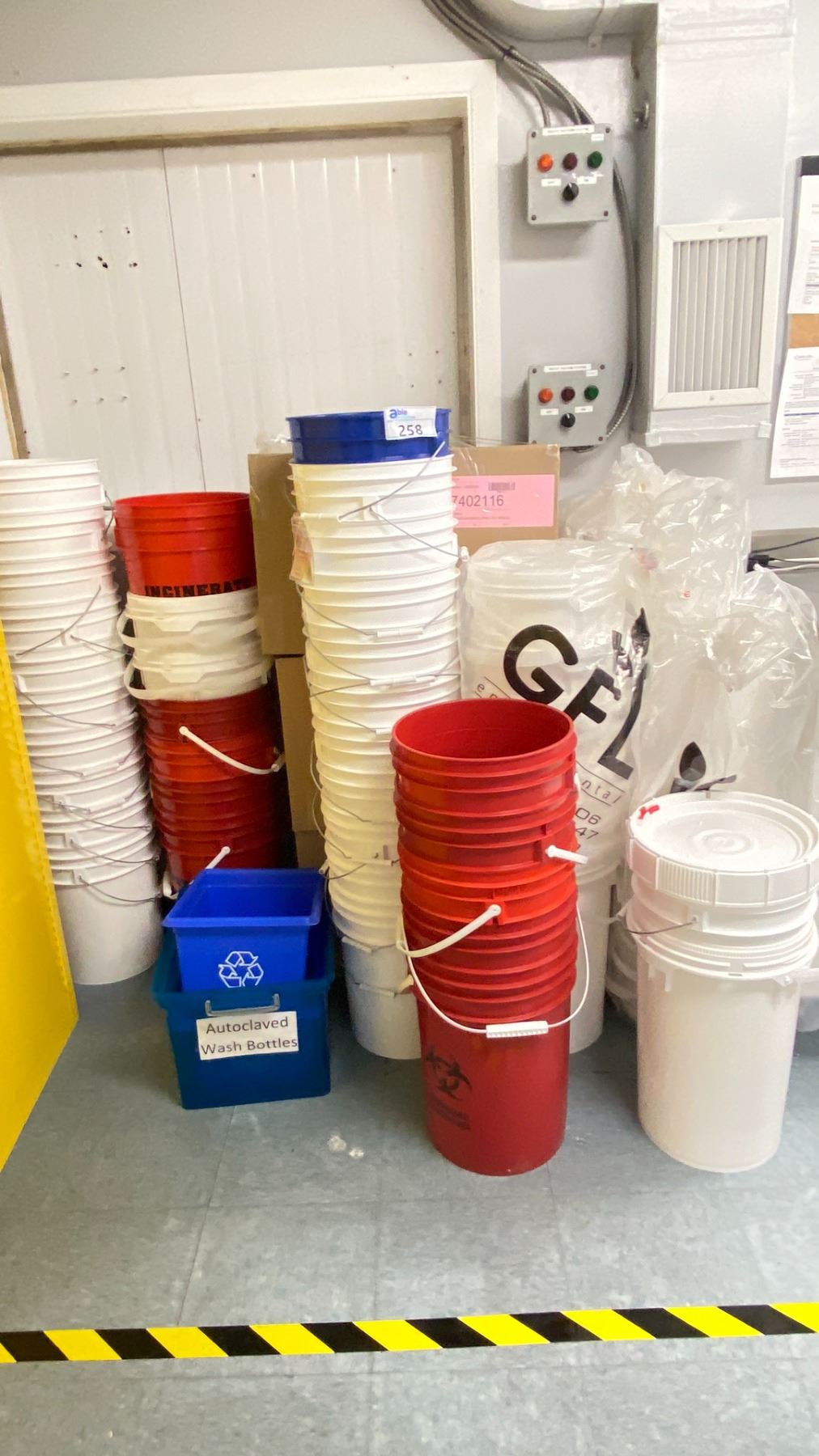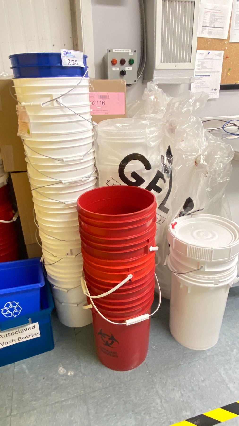 LARGE VOLUME OF 5 GALLON BUCKETS AND 3 BOXES OF LIDS
