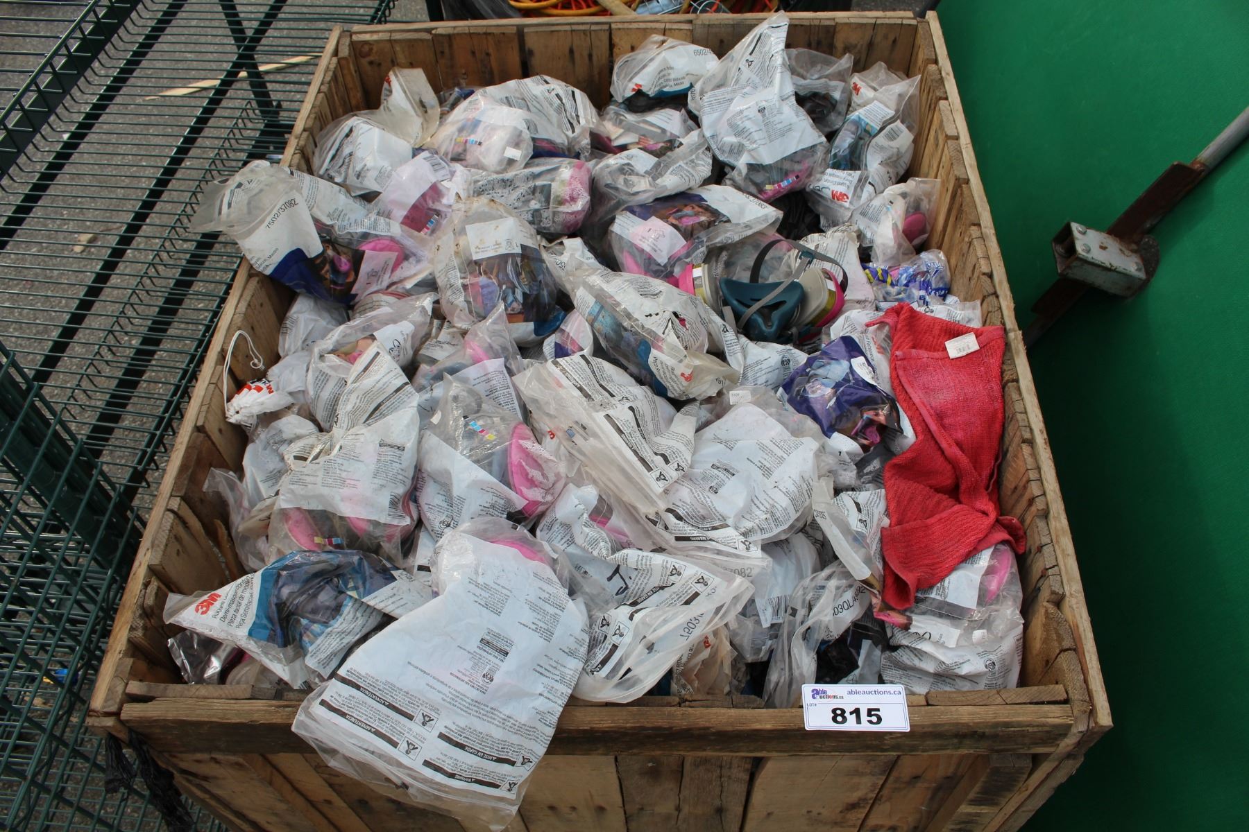 LARGE WOODEN BOX FULL OF 3M RESPIRATORS