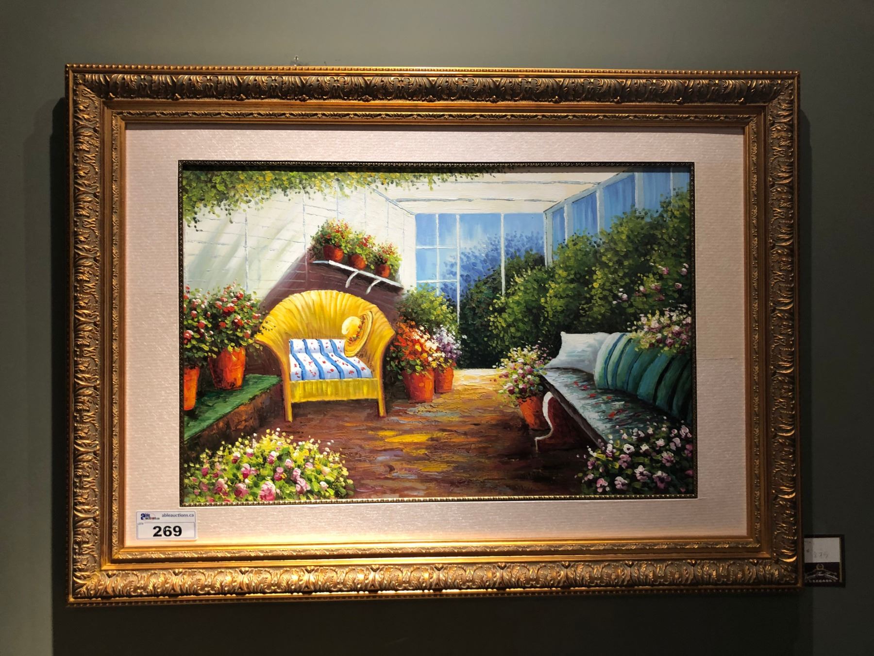 LARGE WOODEN FRAMED PAINTED ARTWORK - CONSERVATORY