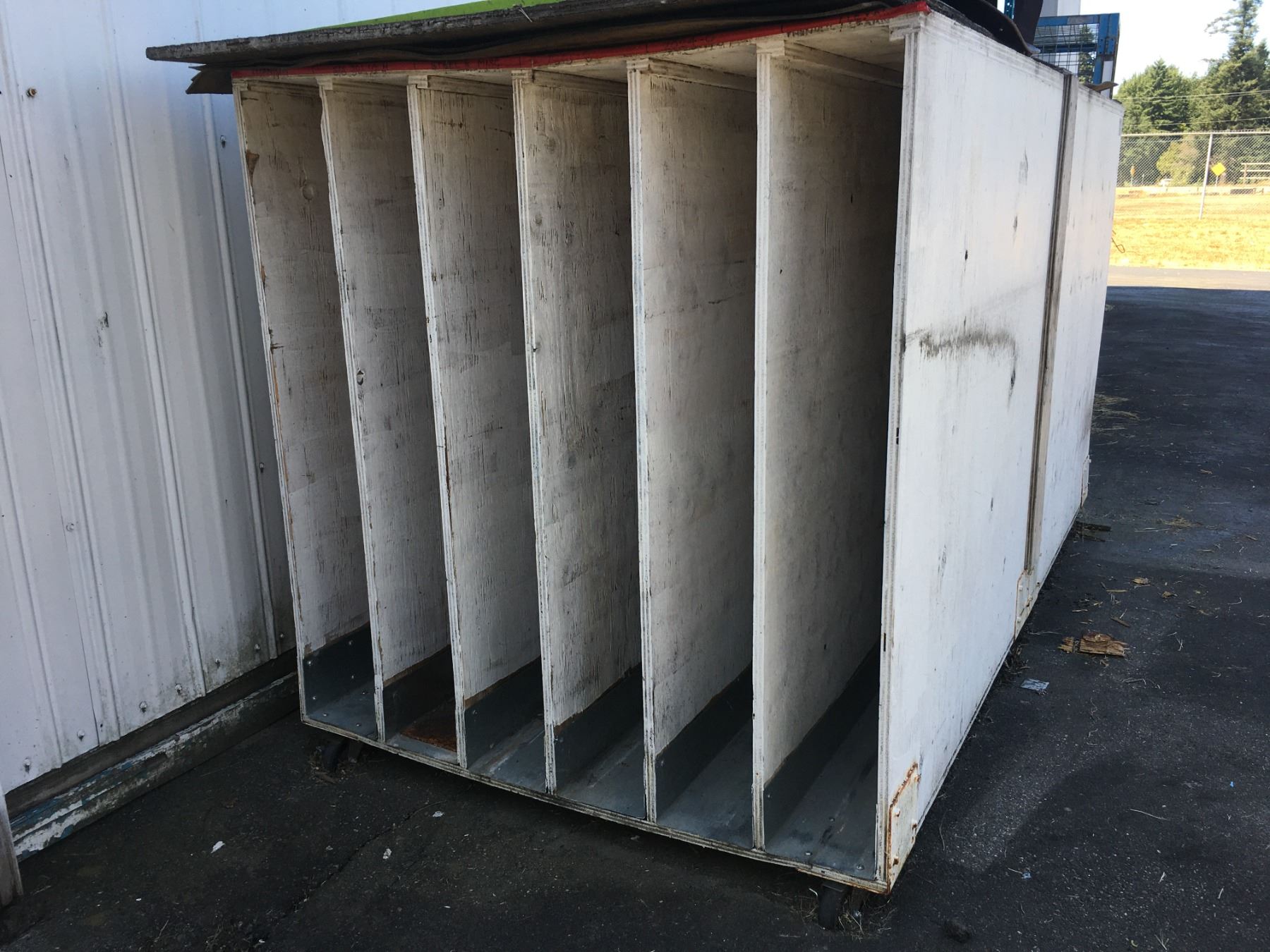 LARGE WOODEN PARTS STORAGE ROLLING CABINET