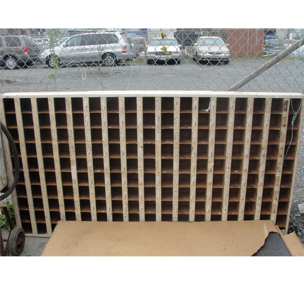 LARGE WOODEN PIGEON HOLE CUPBOARD