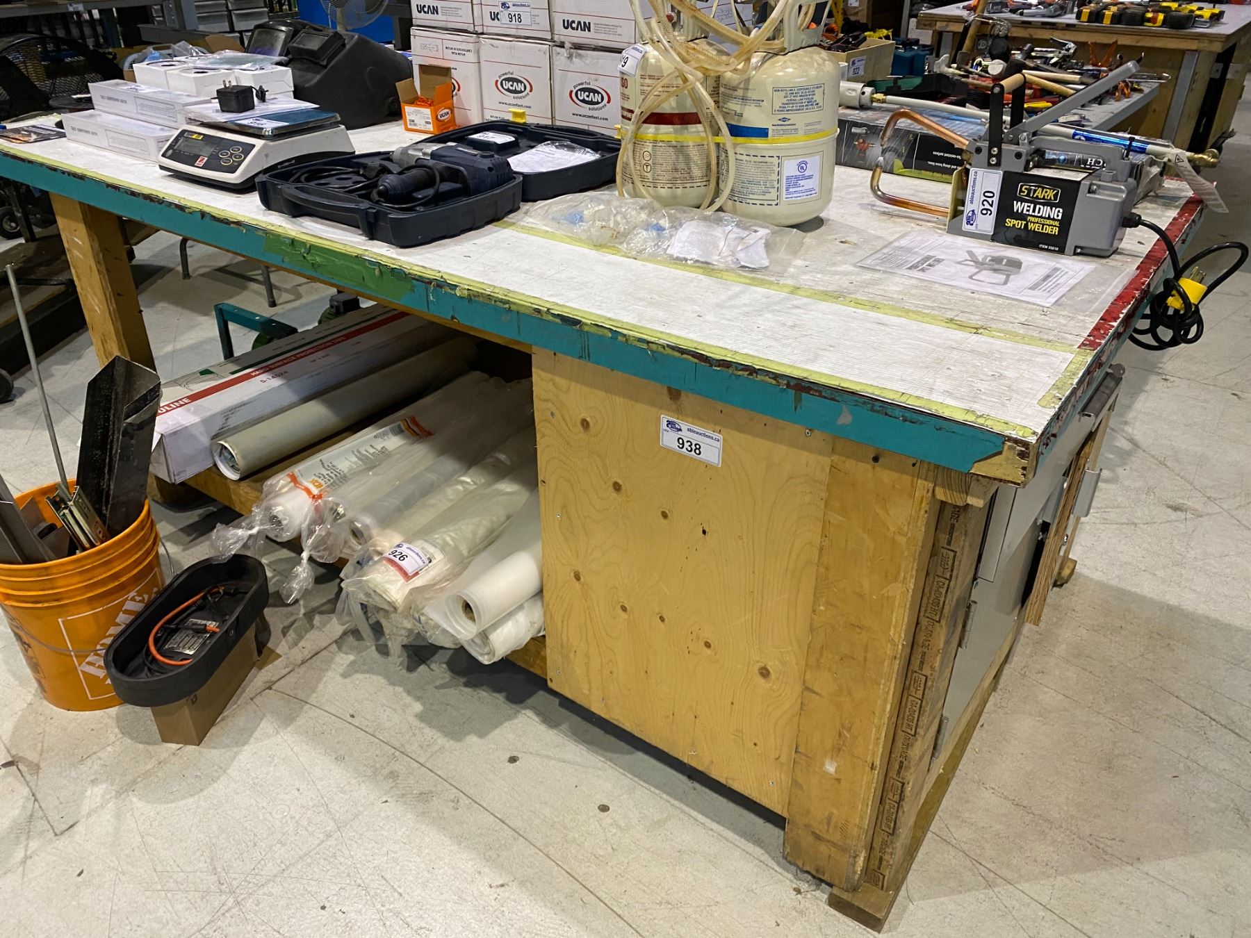 LARGE WOODEN WORK BENCH, 4' X 8'