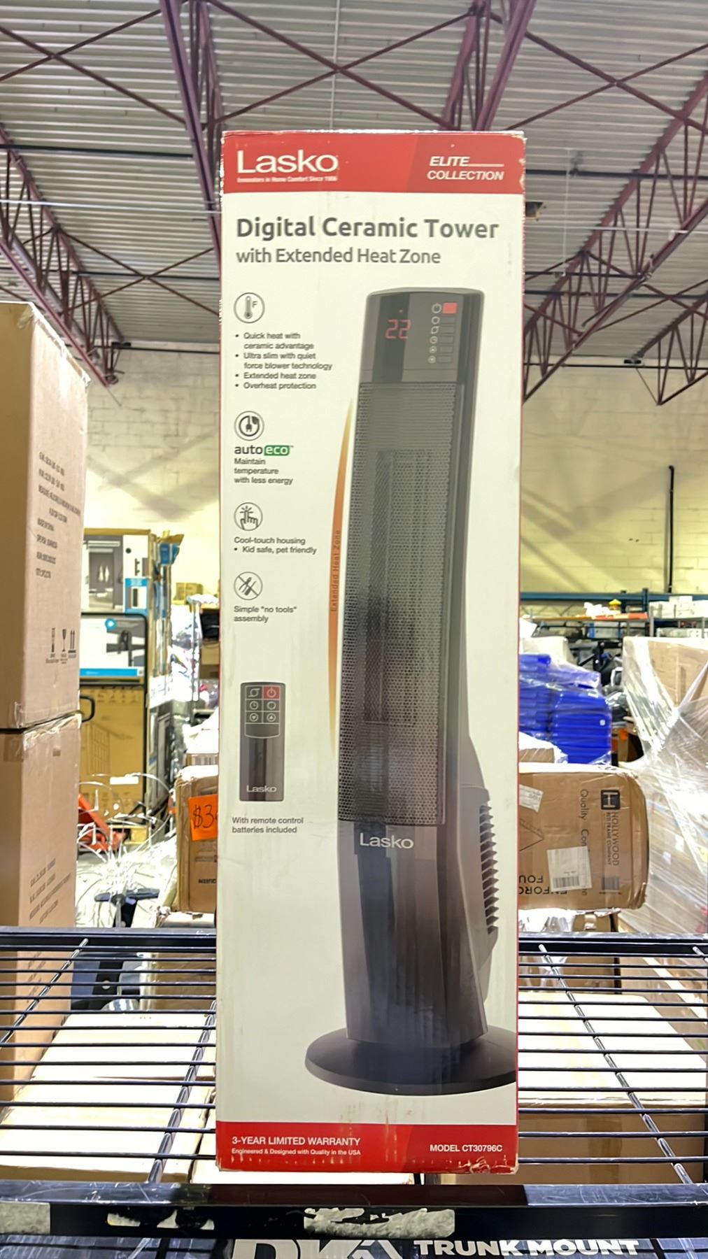 LASKO ELITE COLLECTION DIGITAL CERAMIC TOWER HEATER WITH EXTENDED HEAT ZONE (MAY BE MISSING PIECES)