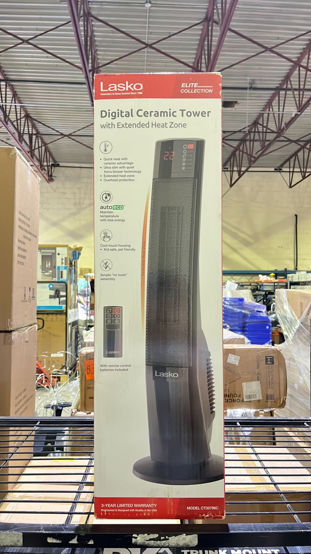 LASKO ELITE COLLECTION DIGITAL CERAMIC TOWER HEATER WITH EXTENDED HEAT ZONE (MAY BE MISSING PIECES)
