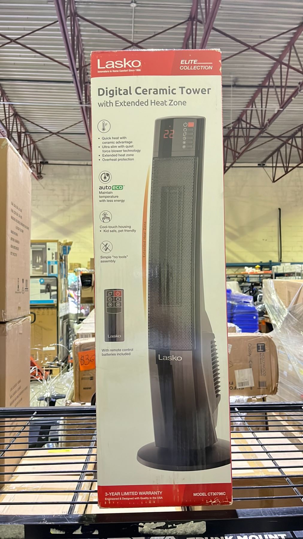 LASKO ELITE COLLECTION DIGITAL CERAMIC TOWER HEATER WITH EXTENDED HEAT ZONE (MAY BE MISSING PIECES)