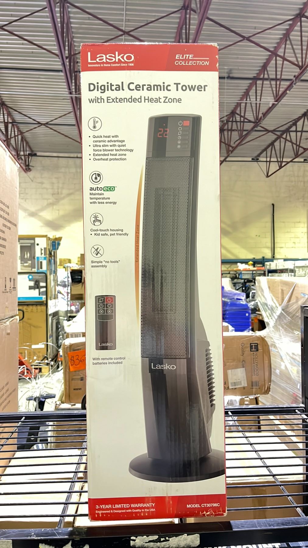 LASKO ELITE COLLECTION DIGITAL CERAMIC TOWER HEATER WITH EXTENDED HEAT ZONE (MAY BE MISSING PIECES)
