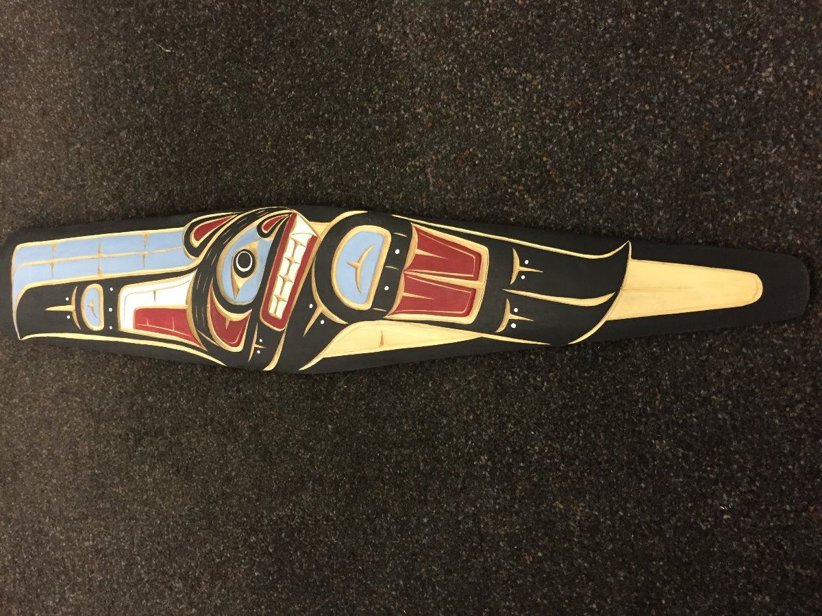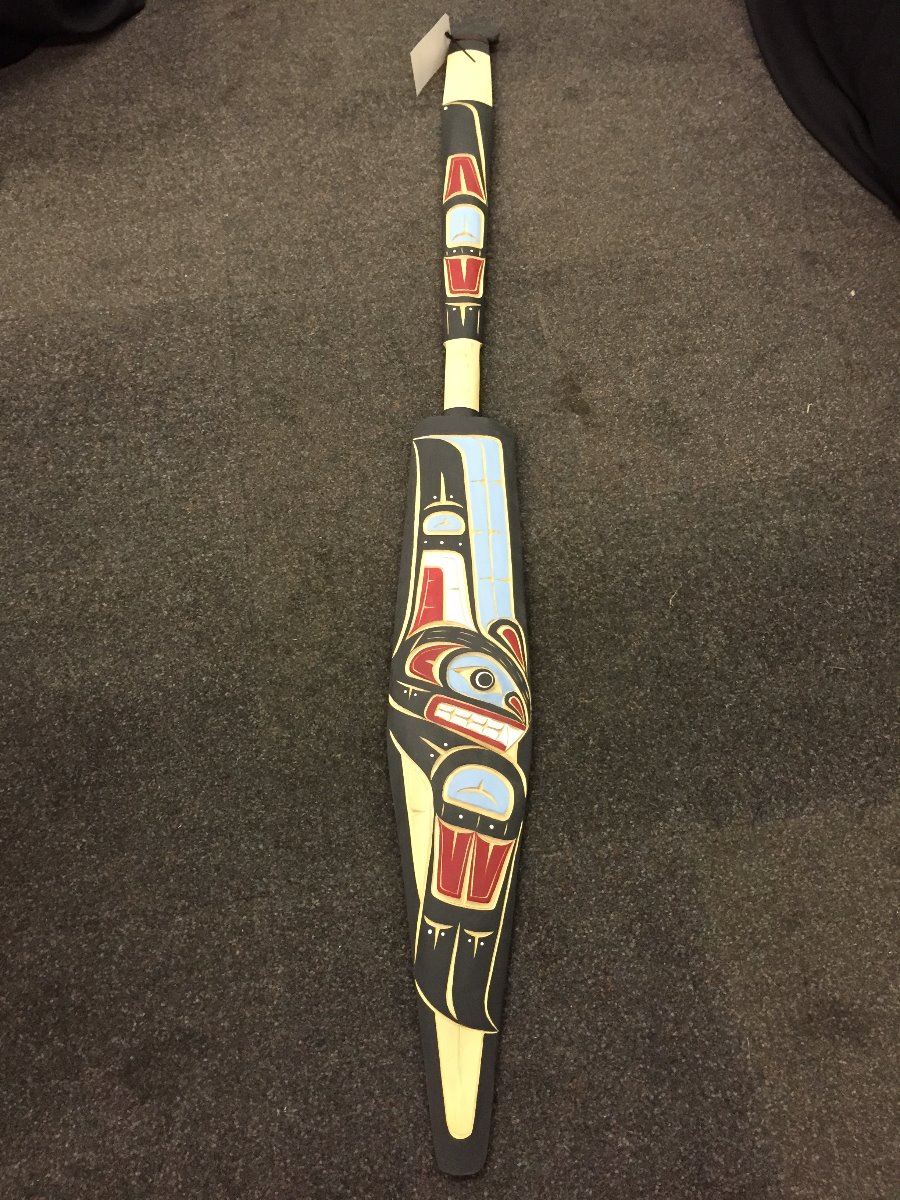 LAURENCE SCOW, HEAVILY CARVED 6' KILLER WHALE PADDLE