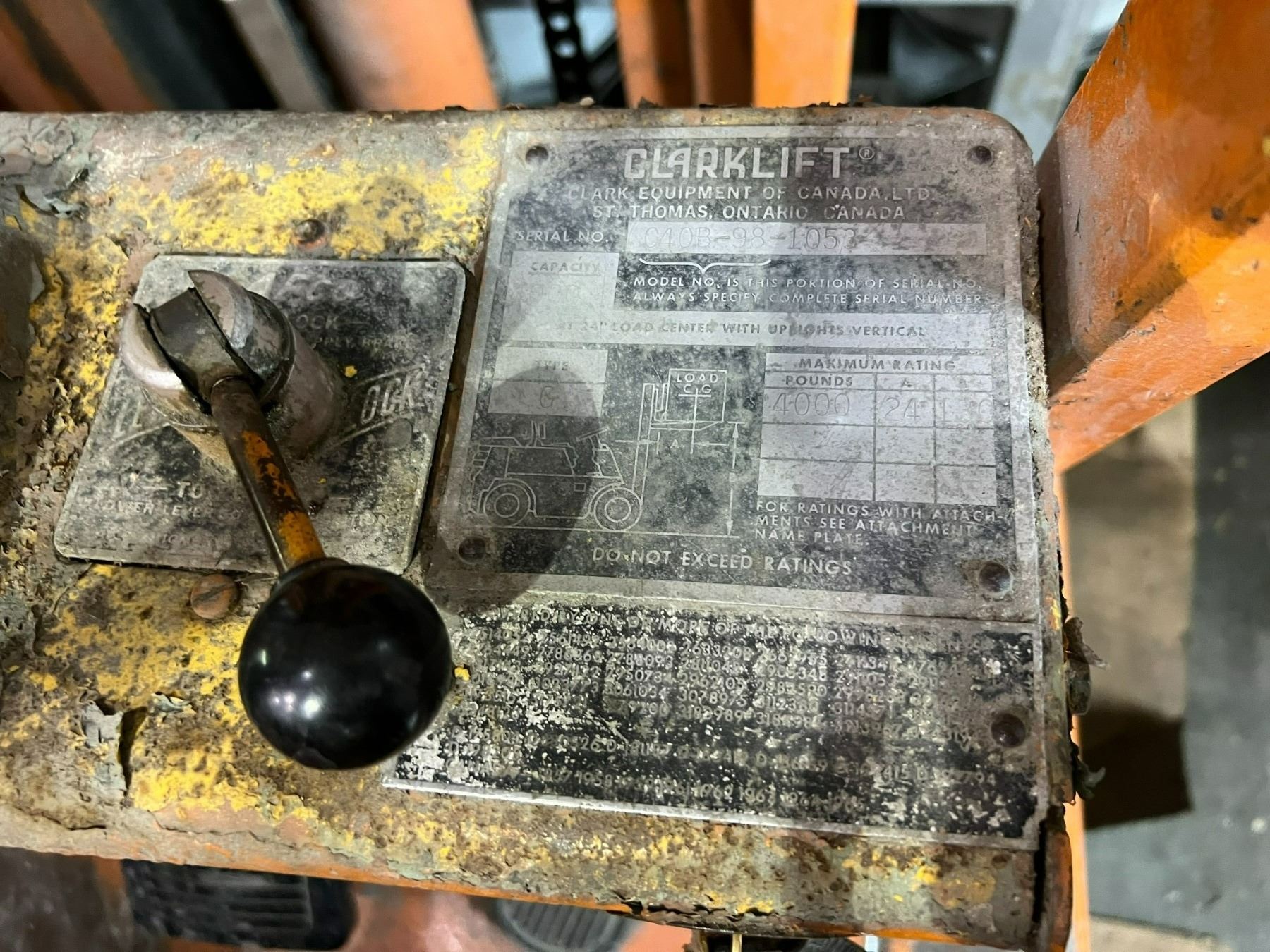 *LD*CLARK MODEL C40B-98 PROPANE FORKLIFT (4051 HRS) - 2-TON CAPACITY - 2-STAGE LIFT - INCLUDES TANK FORK LIFT CAN NOT BE REMOVED UNTIL MONDAY 3:30PM
