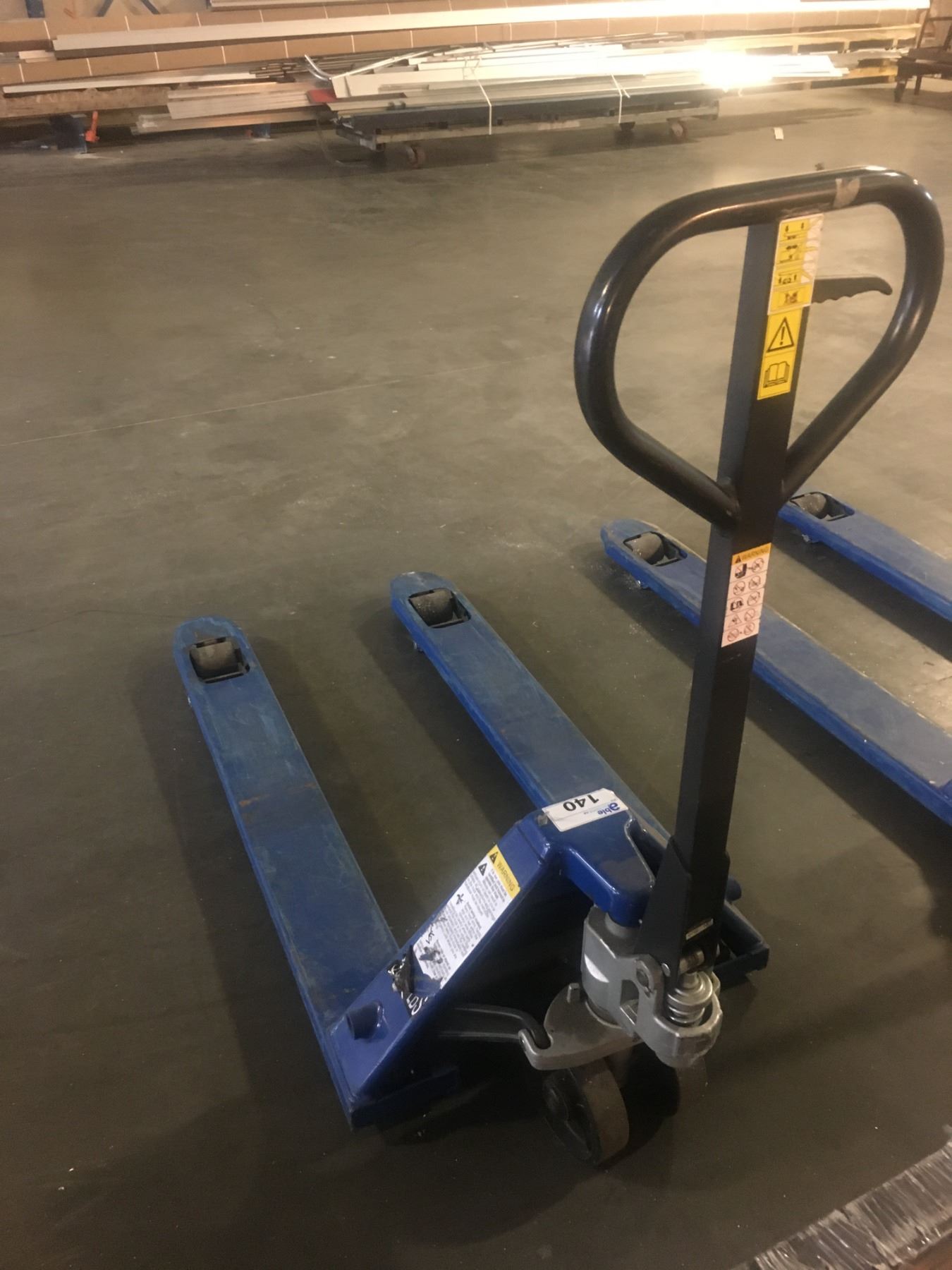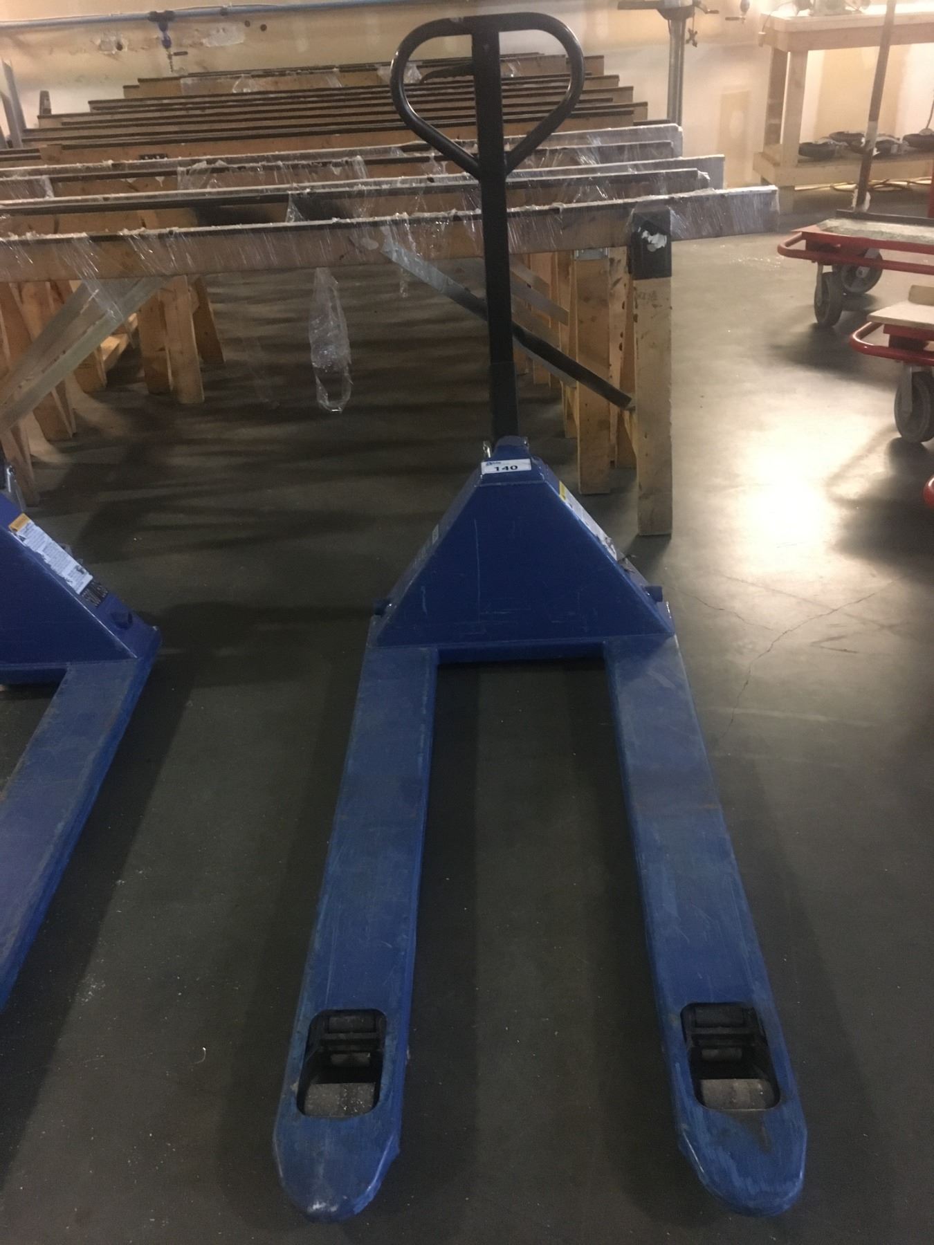 *LD* ULINE H-7504 INDUSTRIAL PALLET TRUCK 5500 LBS CAPACITY (BLUE) *LAST DAY REMOVAL, CANNOT PICKUP UNTIL 3PM*
