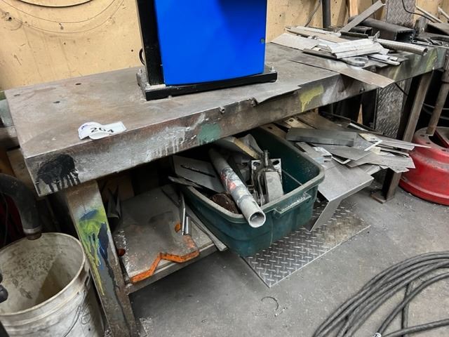 **LD VERY HEAVY METAL TABLE 63"X18"X32" WITH ASST SCRAP METAL. PICK UP LATE ON LAST DAY AND BRING ENOUGH HELP TO LOAD