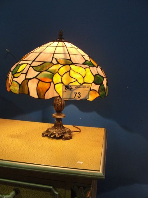 LEADED STAINED GLASS TIFFANY STYLE TABLE LAMP - YELLOW FLOWER PATTERN