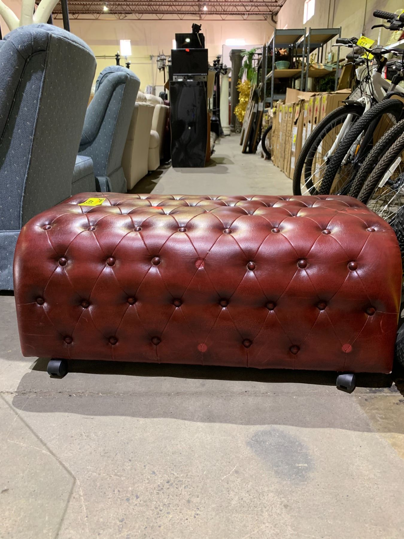 LEATHER BUTTON DETAILED OTTOMAN (SOME DAMAGE)