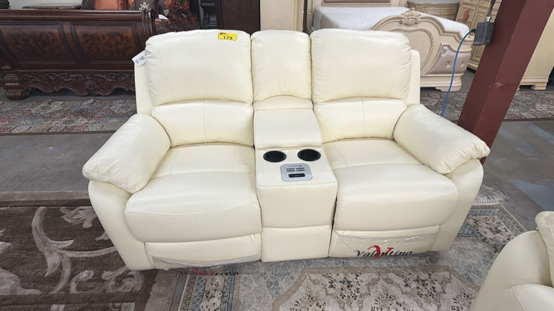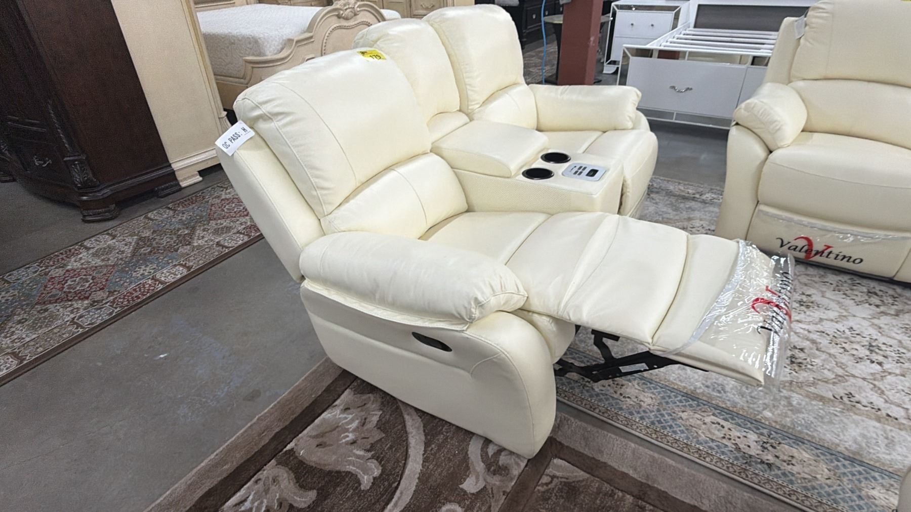 LEATHER ELECTRIC RECLINER WITH CUPHOLDERS & STORAGE