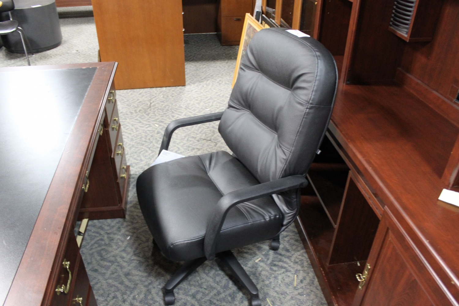 LEATHER HIGH BACK CHAIR WITH 2 CLIENT CHAIRS