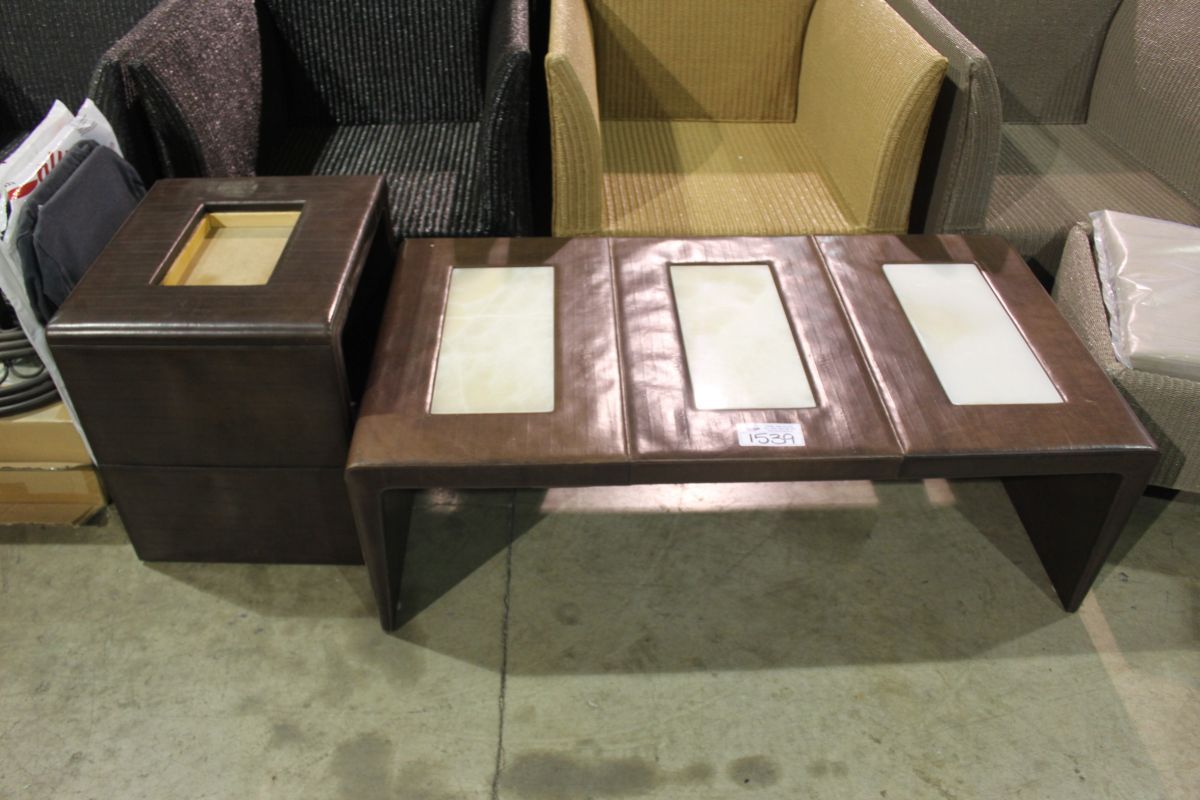 LEATHER MARBLE INSET COFFEE TABLE AND END TABLE