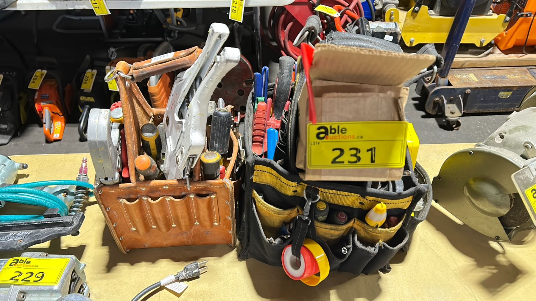 LEATHER TOOL BAG WITH ASSORTED HAND TOOLS & DEWALT TOOL BAG WITH ASSORTED HAND TOOLS