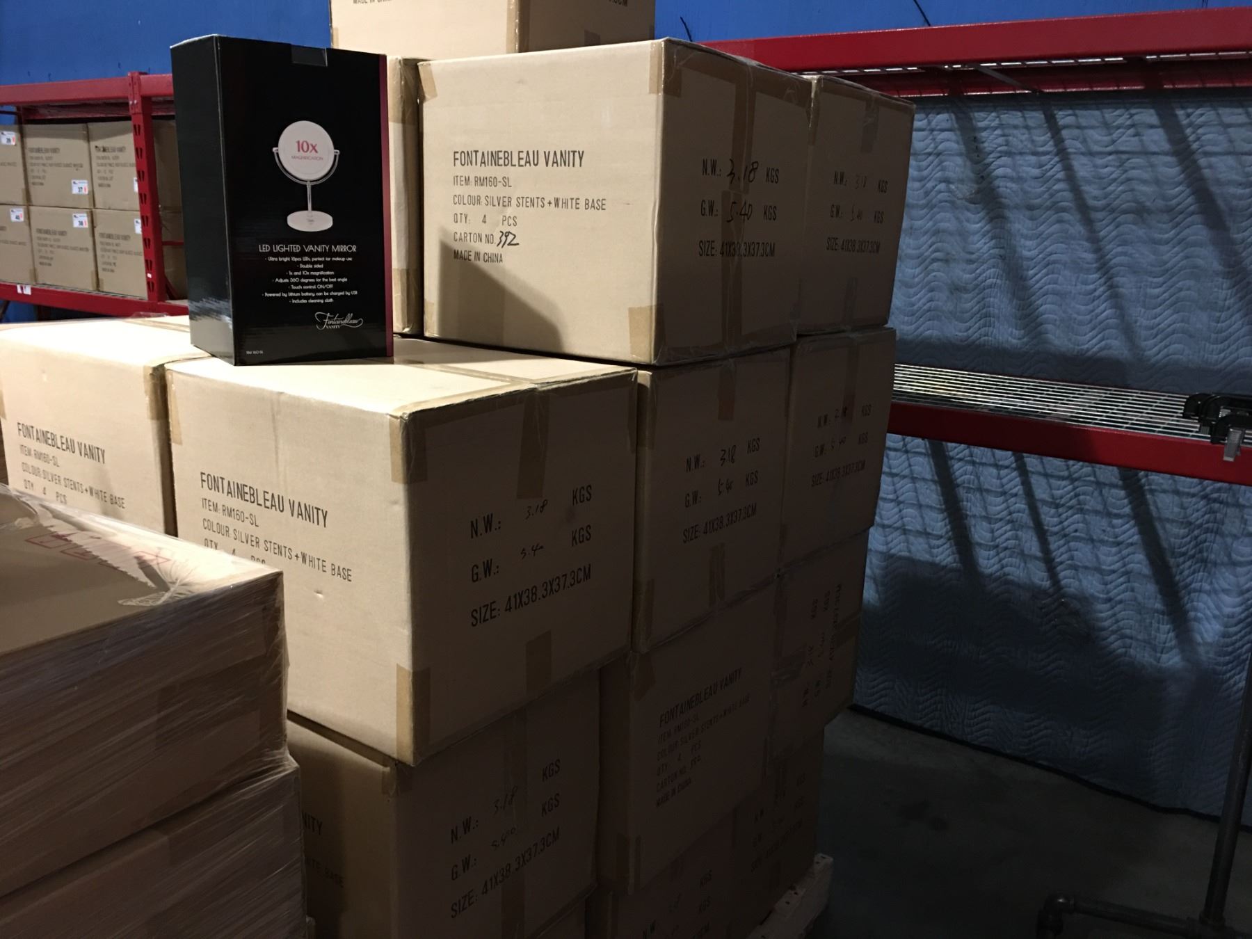 LED LIGHTED VANITY MIRRORS. 1 X OR 10 X MAGNIFICATION PALLET LOT OF 23 CASES - TOTAL 92 MIRRORS - A