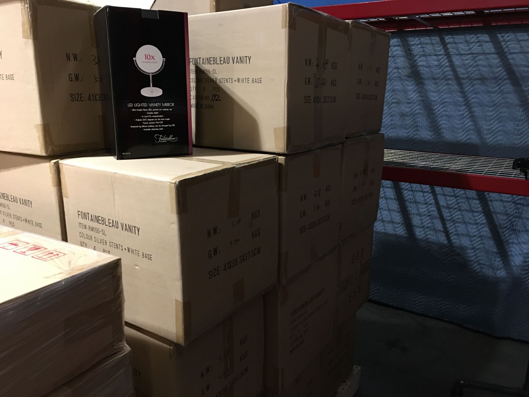LED LIGHTED VANITY MIRRORS. 1 X OR 10 X MAGNIFICATION PALLET LOT OF 23 CASES - TOTAL 92 MIRRORS - B