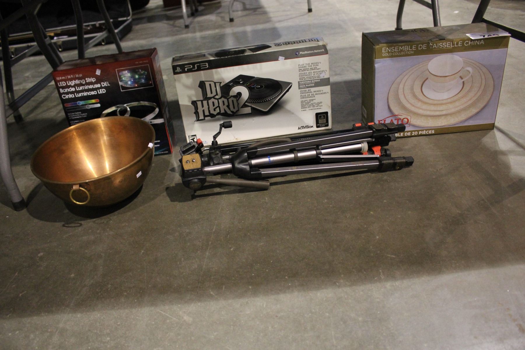 LED LIGHTING STRIP, PS3 DJ HERO 2, CHINA SET, COPPER BOWL AND 2 TRIPODS