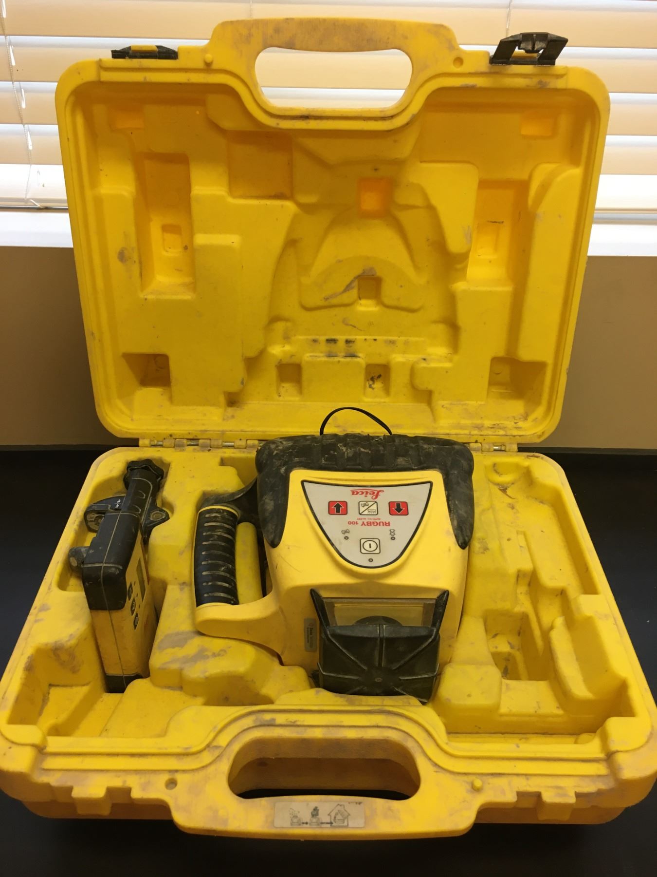 LEICA RUGBY 100 AUTOMATIC SELF-LEVELING ROTATING LASER WITH HARD SHELL CASE