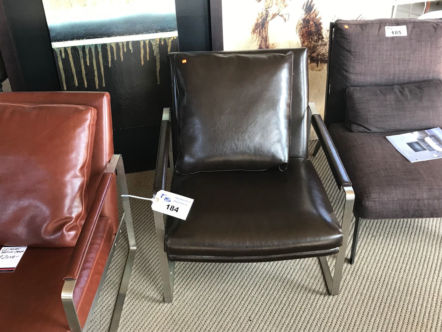 LEMAN CHROME METAL & LEATHER BRICK ARM CHAIR