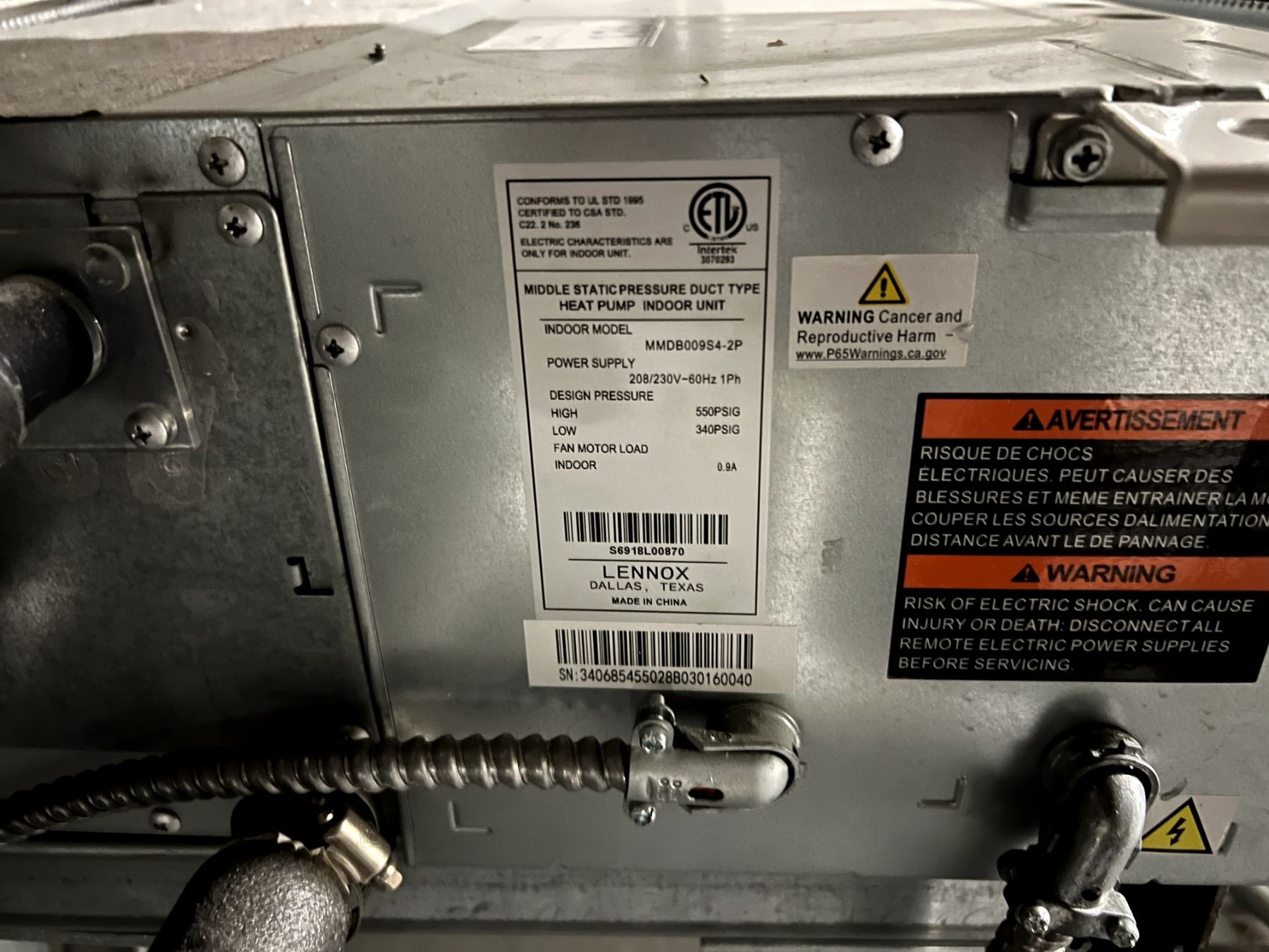 LENNOX 3/4 TON HEAT PUMP MODEL MMDB009S4-2P WITH EVAP UNIT. UNITS WILL BE REMOVED FOR PICK UP