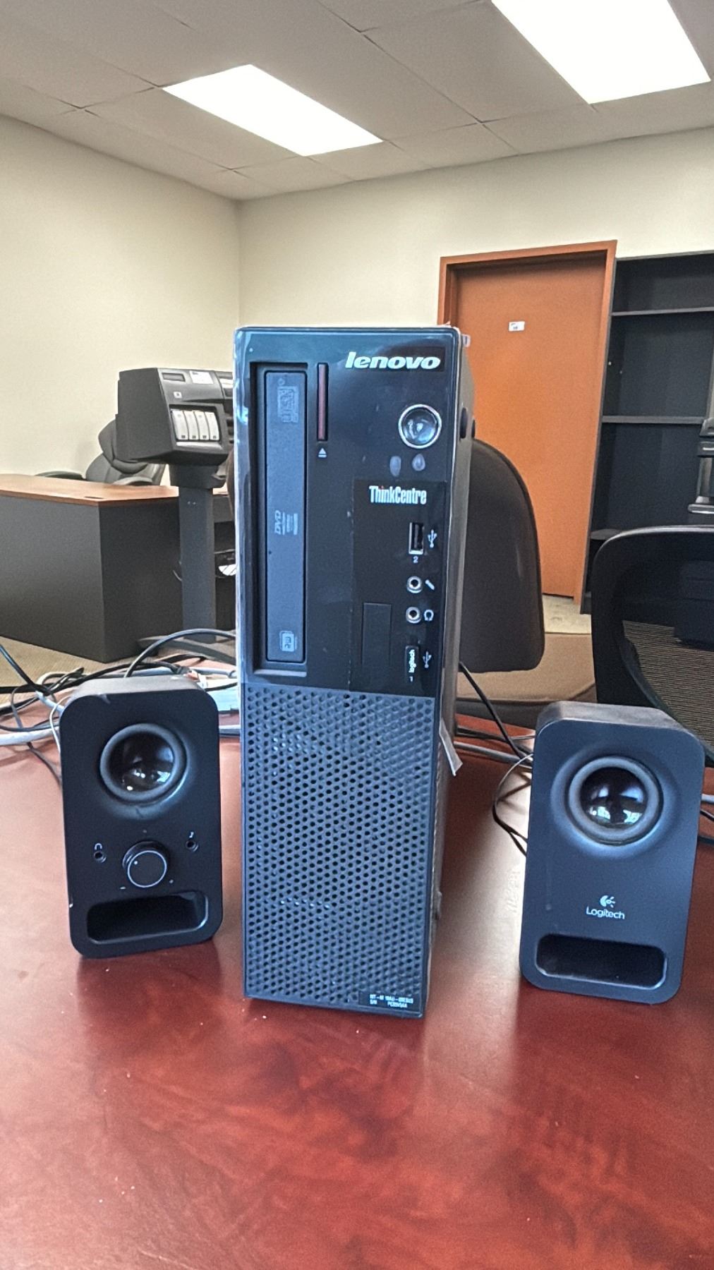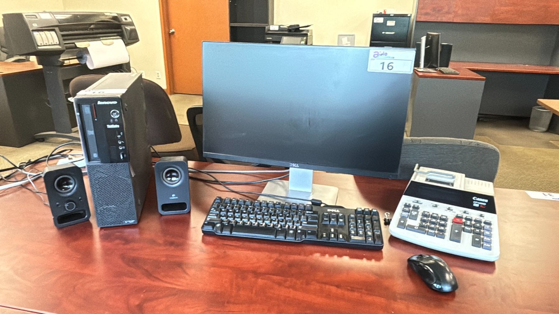 LENOVO COMPUTER (HARD DRIVE REMOVED) WITH DELL MONITOR, SPEAKERS AND CALCULATOR
