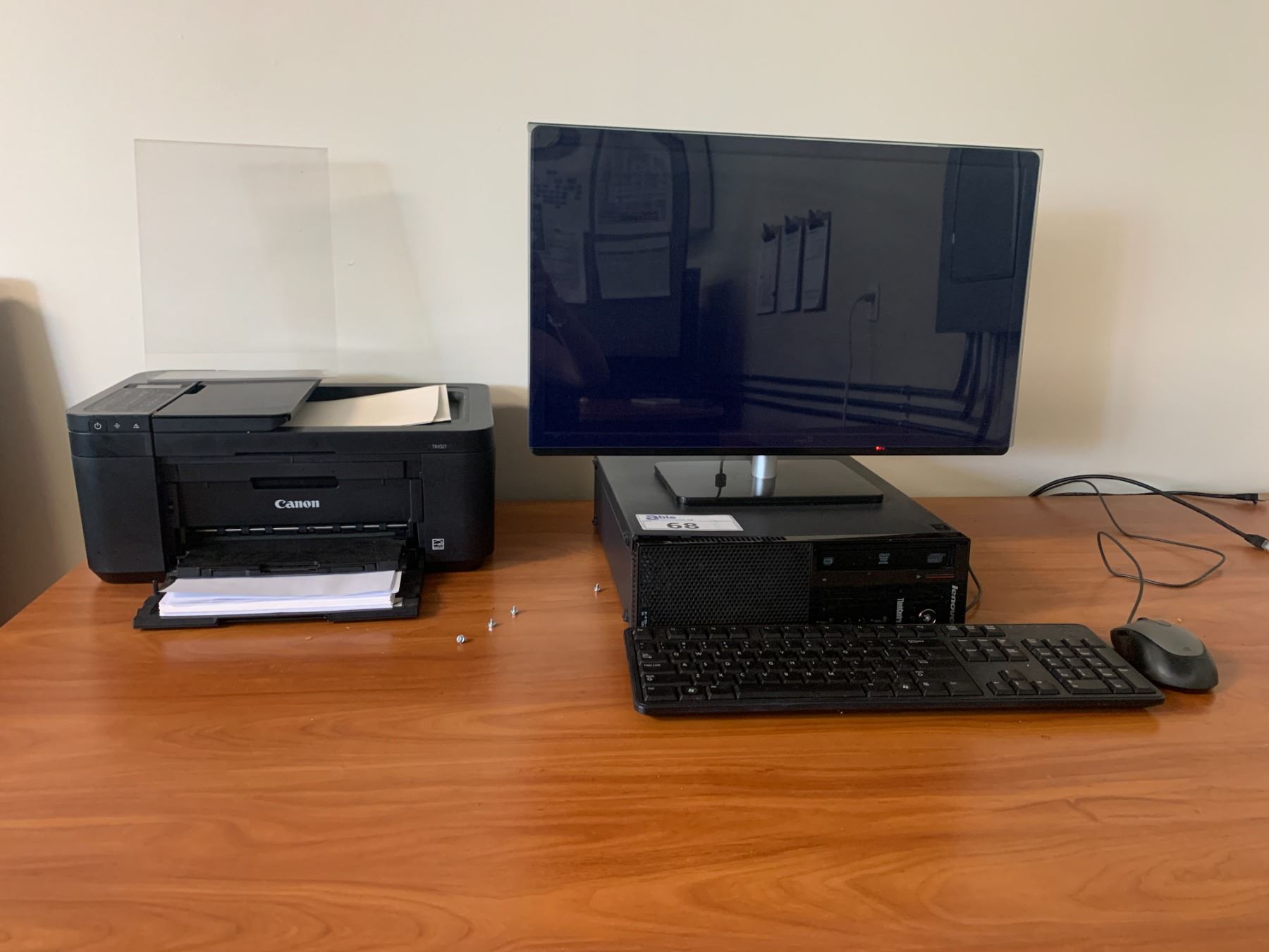 LENOVO COMPUTER (HARD DRIVE REMOVED) WITH PRINTER AND MONITOR