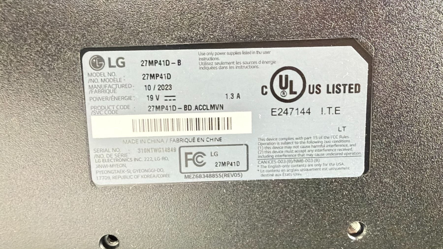 LG 27" LED MONITOR