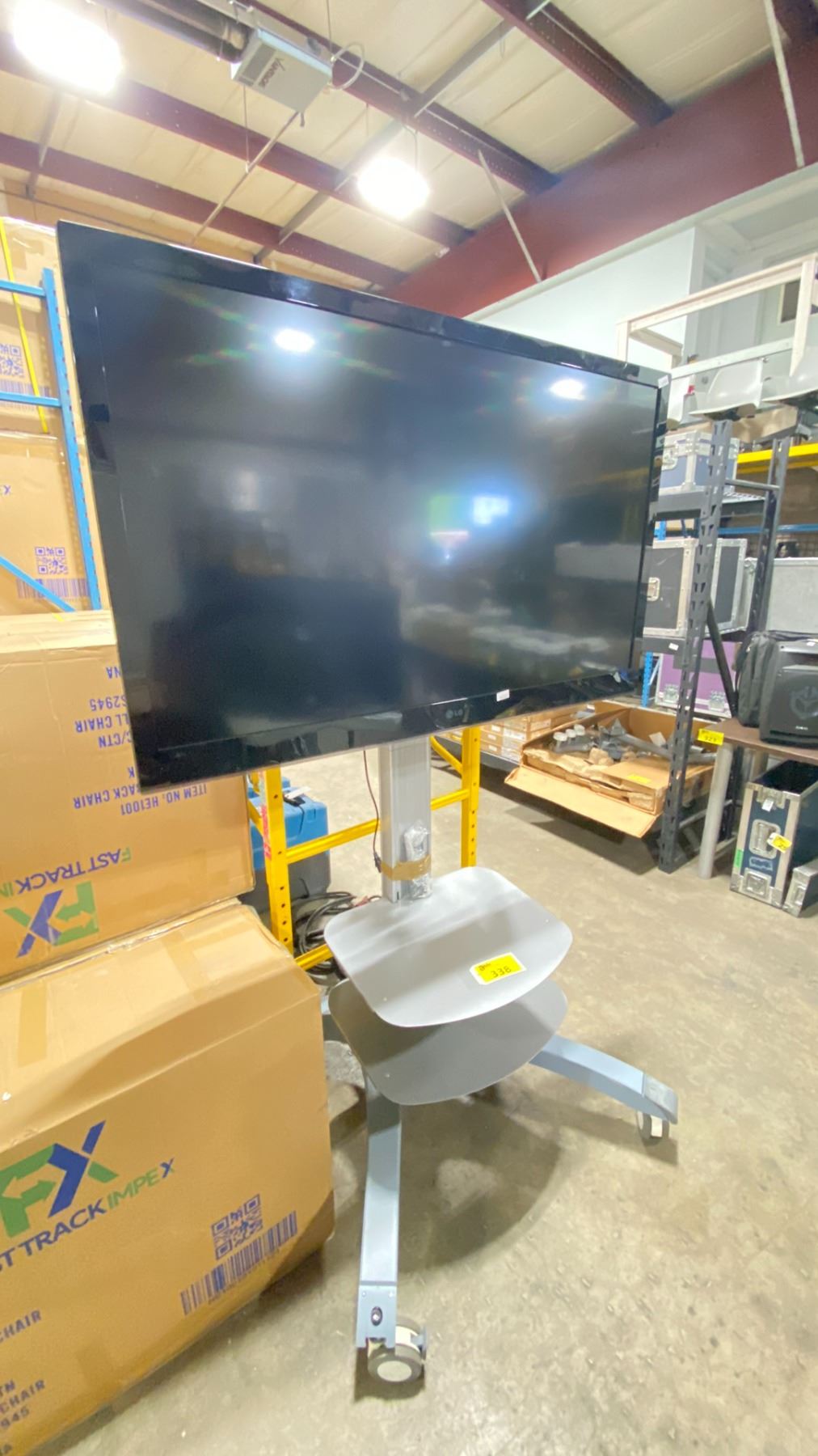 LG 55" LED FLAT SCREEN TV ON METAL MOBILE STAND WITH REMOTE MODEL NUMBER 55LV4400