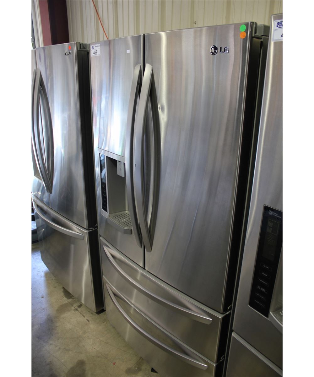 LG LMX 25981ST STAINLESS STEEL TWO DOOR REFRIGERATOR WITH DOUBLE DRAWER FREEZER AND WATER/ICE DESPENSER.*FLOOR MODEL, MAY HAVE COSMETIC IMPERFECTIONS