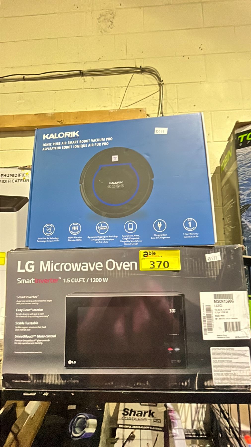 LG MICROWAVE OVEN AND KALORIK SMART ROBOT VACUUM PRO *MAY BE MISSING PIECES/ UNKNOWN WORKING CONDITIONS*