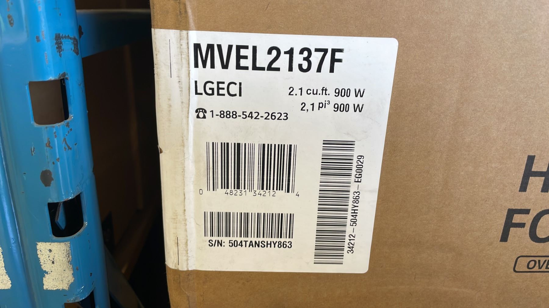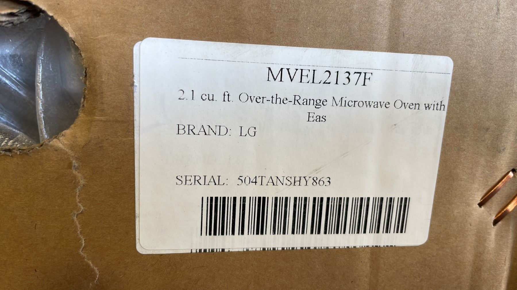 LG MODEL MVEL2137F. 30" 2.1 CU FT STAINLESS STEEL OVER-THE-RANGE SMART MICROWAVE OVEN SN 504TANSHY863 RETAIL PRICE $649.00