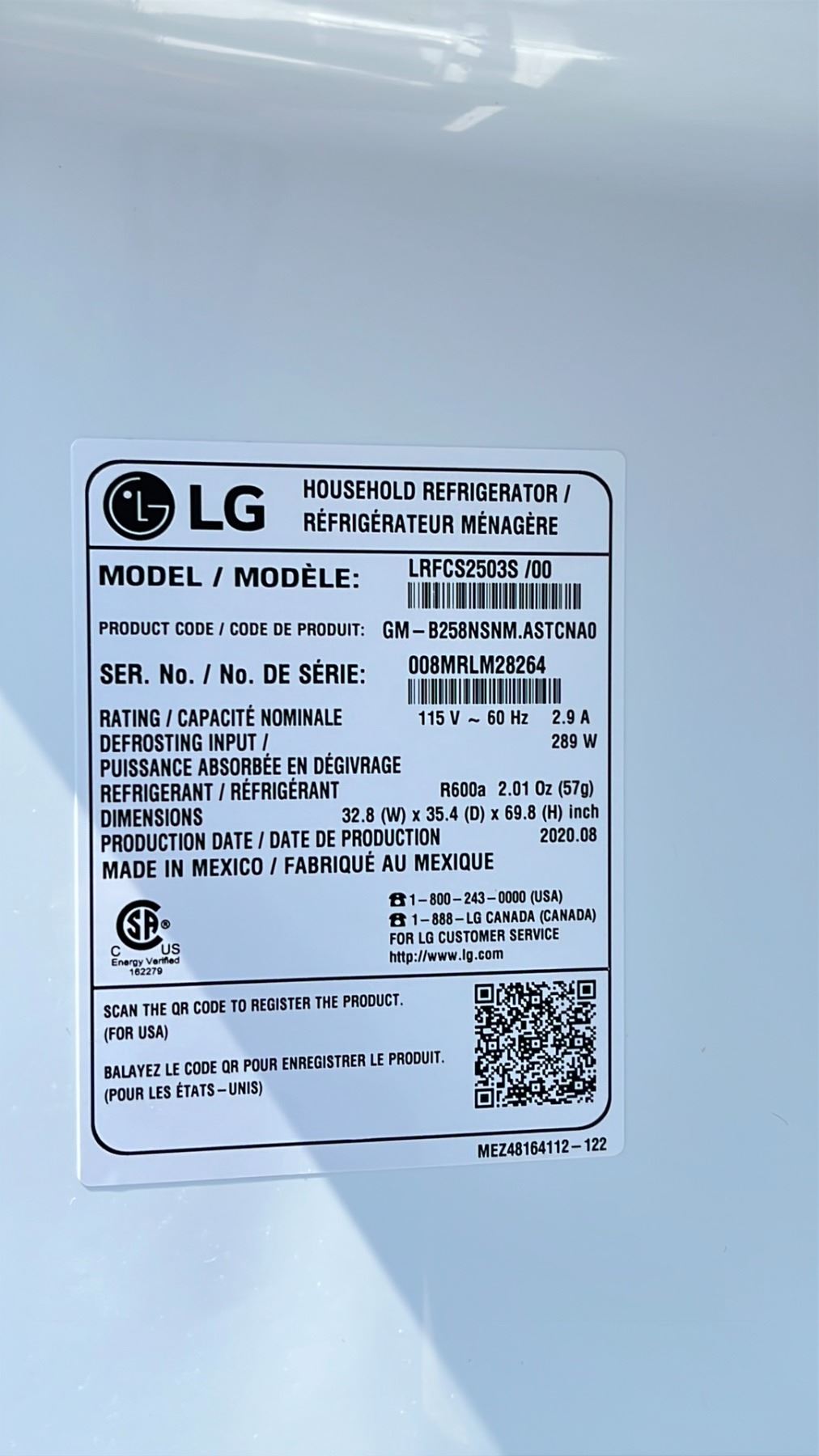LG STAINLESS STEEL FRENCH DOOR BOTTOM FREEZER REFRIGERATOR *HANDLES INSIDE*