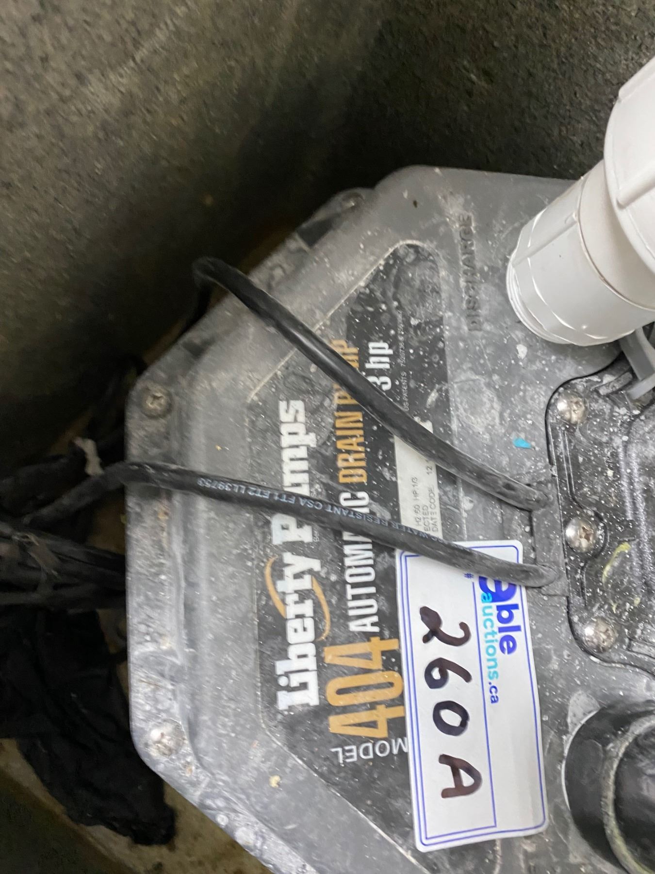 LIBERTY PUMPS 404 AUTO DRAIN PUMP 1/3 H.P. (WILL BE PROFESSIONALLY DISCONNECTED PRIOR TO AUCTION)
