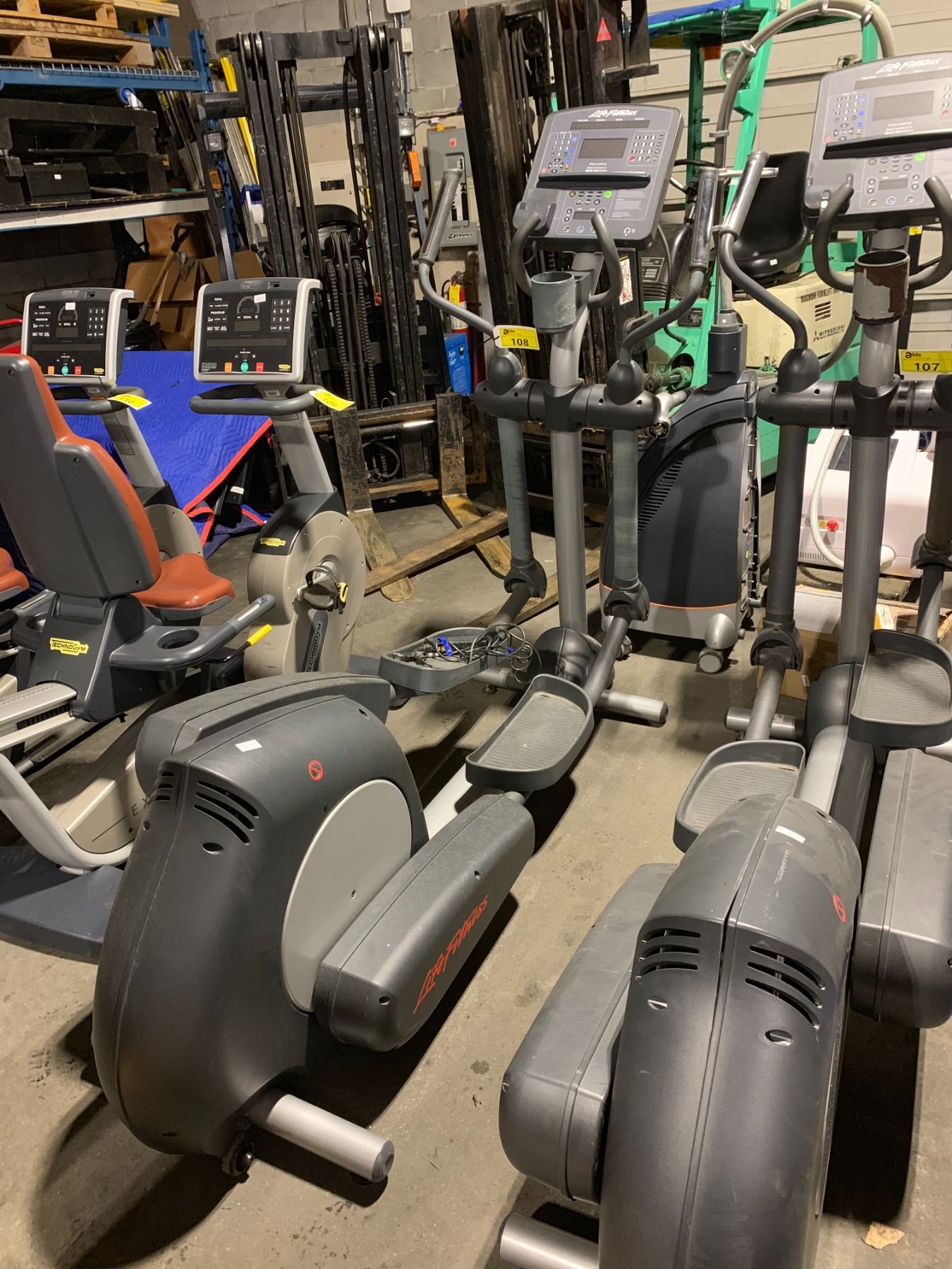 LIFE FITNESS COMMERCIAL ELLIPTICAL WITH DIGITAL SCREEN, HEADPHONE JACK AND CUP HOLDER *MISSING FRONT RIGHT FOOT*