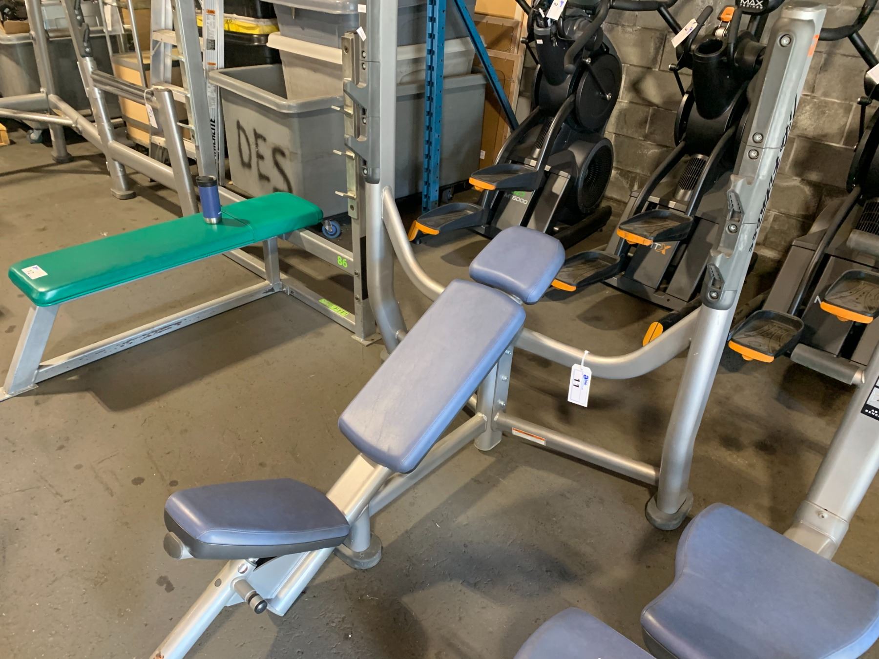 LIFE FITNESS GREY/BLUE COMMERCIAL FREE WEIGHT INCLINE BENCH PRESS