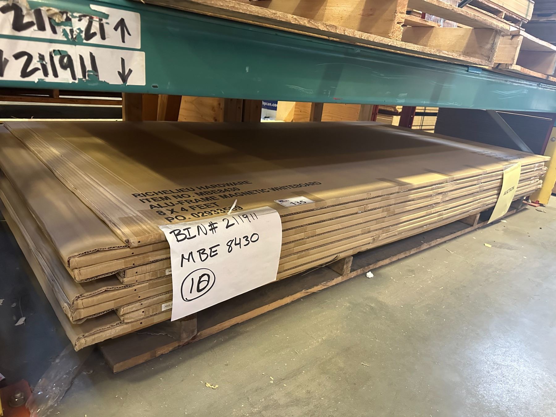 LIFT OF 10 ALUMINUM FRAMED 4' X 8' MAGNETIC WHITEBOARDS