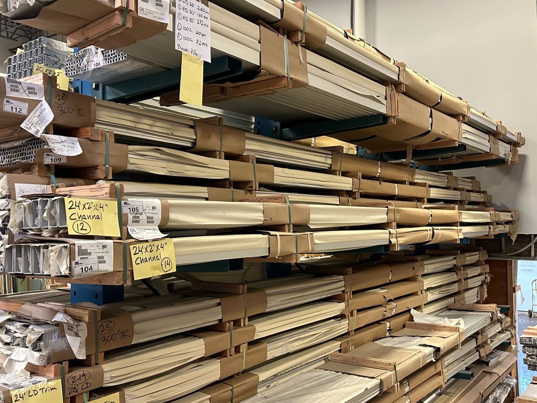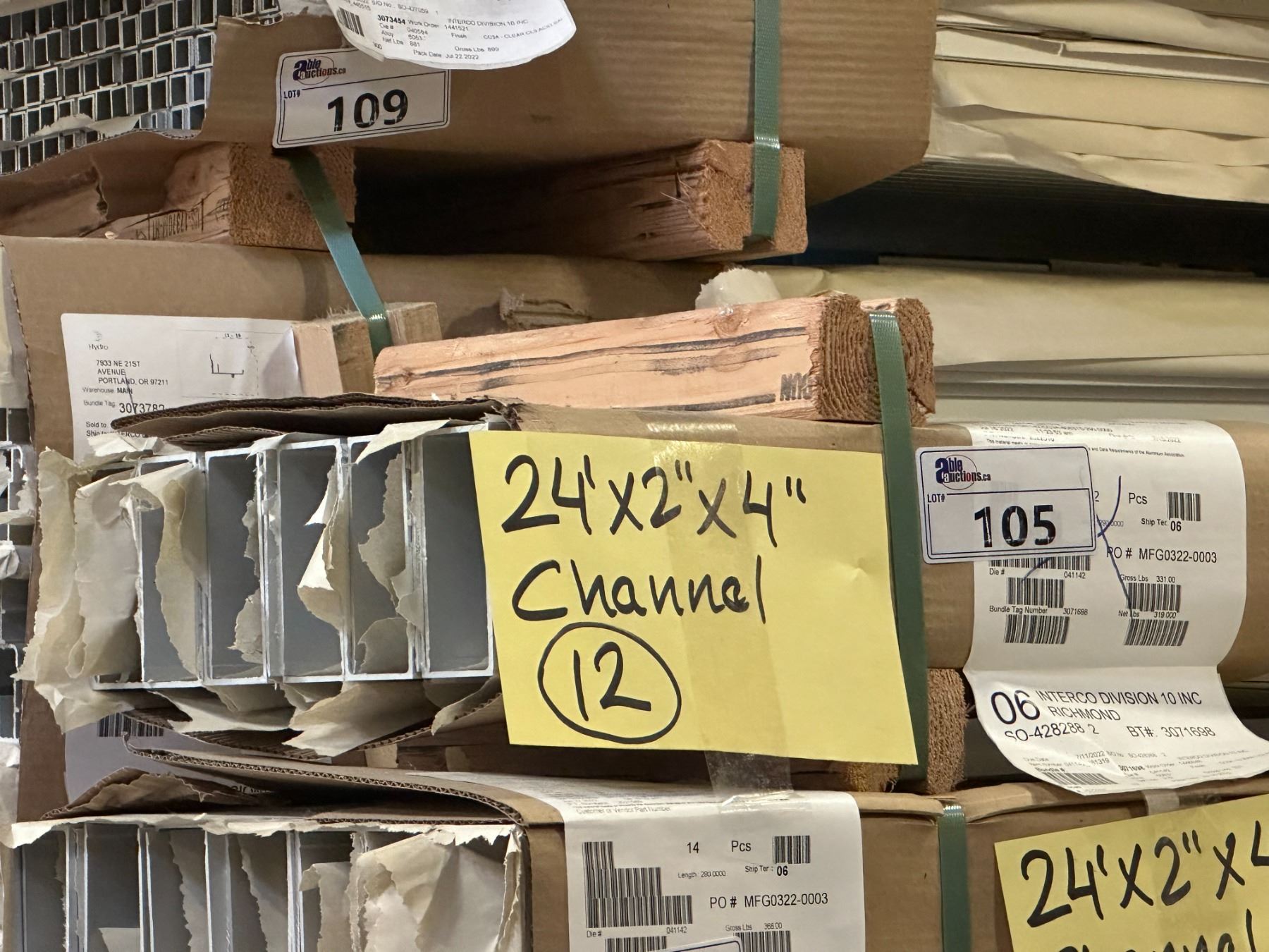 LIFT OF APPROXIMATELY 12 PCS OF ALUMINUM 24' X 2" X 4" CHANNEL