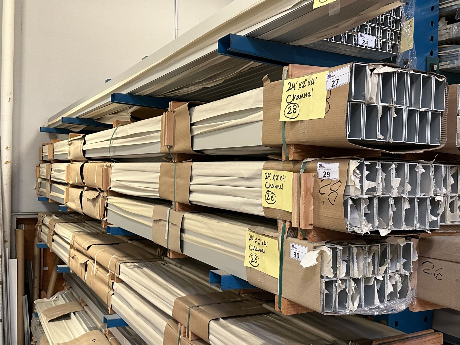 LIFT OF APPROXIMATELY 28 PCS OF ALUMINUM 24' X 2" X 4" CHANNEL